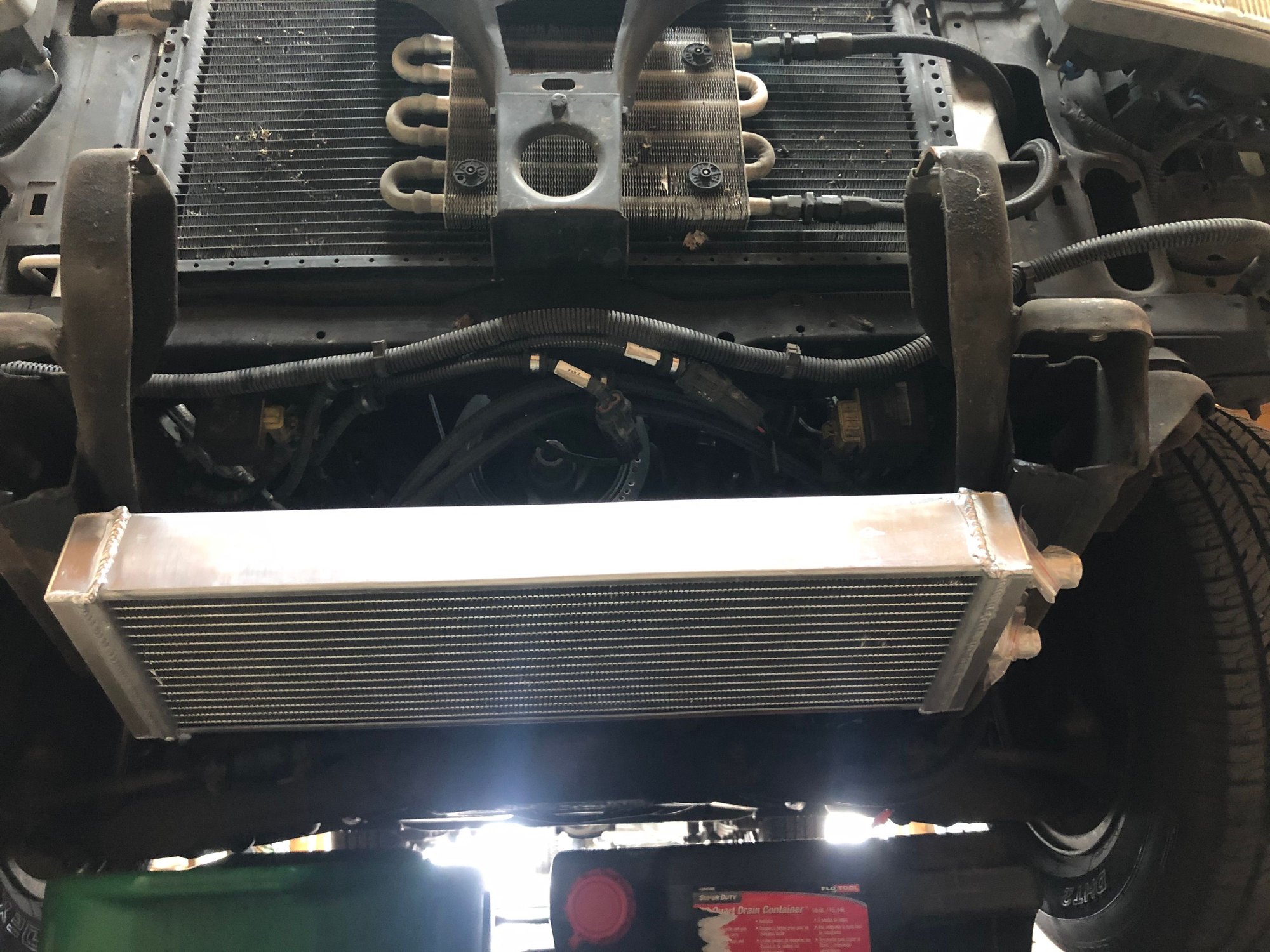 I though about moving my trans cooler and mounting the heat exchanger there, but its still too thick and wont fit. I think i may just go with a different size exchanger in the future and tuck it between the frame rails above where i currently have this one mounted.