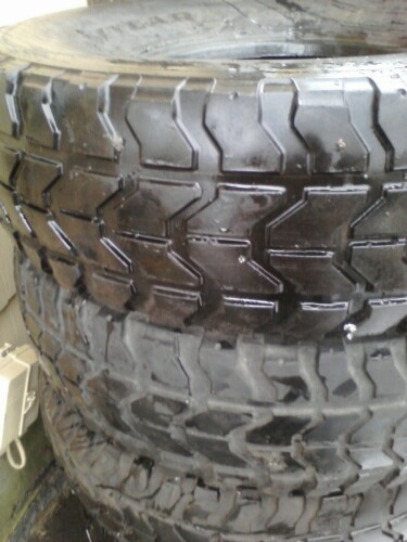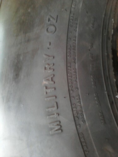 bought tires yesterday, 37x12.5 goodyear mtrs off of a military humvee. theyre even stamped "Military OE" haha. waiting for my frirend to weld up my drag link, already cut it to size. just need rims and im ready to go. leaving for florida tomorrow though, so i guess its gonna wait a week.. uploading pics now