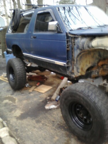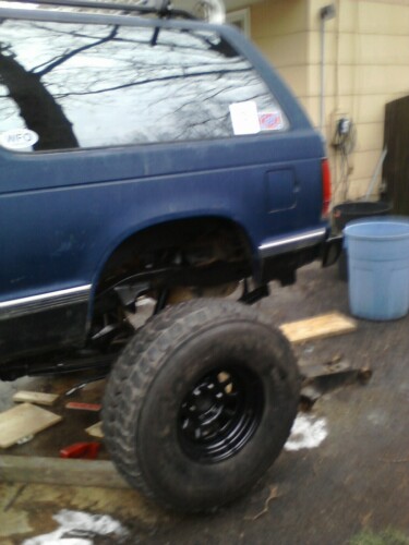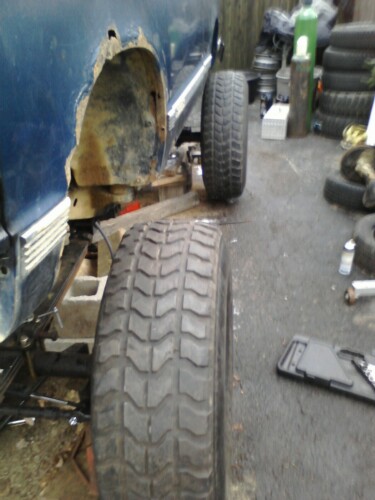 I think they look badazz with the tires hangin out of the fenders, but thats me. Fender flares are just somthing to rip off in the woods. But if it were me Id lower that thing a foot and buy a sawzall. Looks like its got some fender rot in the rear anyway. Youll get sick of climbin up on the tire to get in it