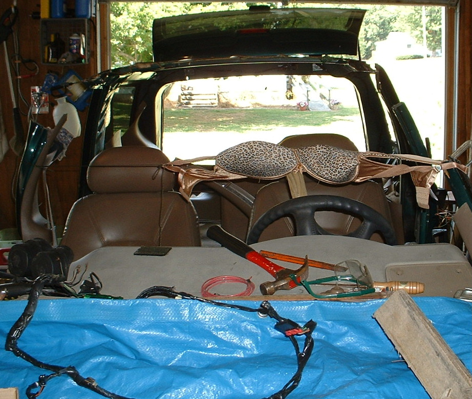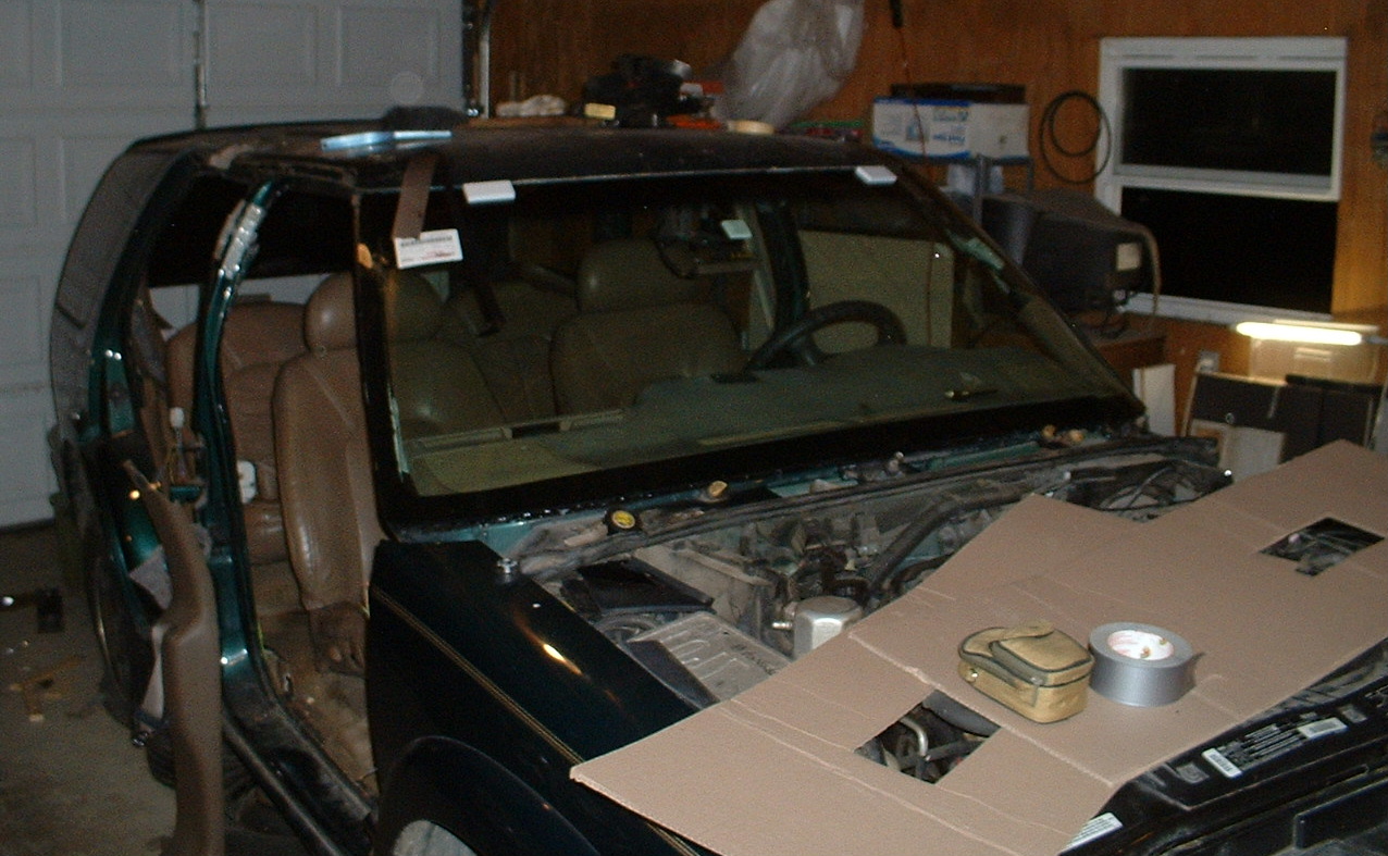 bin back at work on the ole girl. got the top back on and new windshield in. I am fare from done but in the next few days she will be back to drivable!