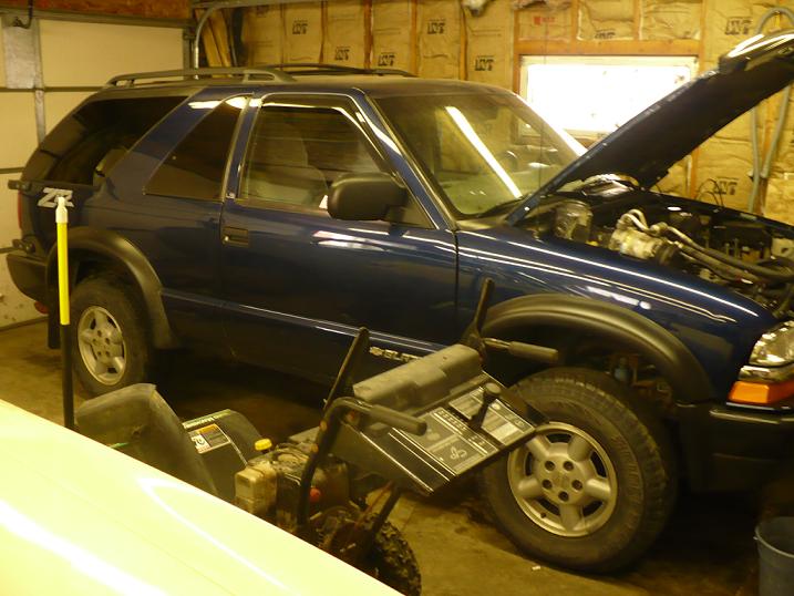 So last saturday a kid I know asked me if I was interested in trading vehicles. He has an 01 ZR2 blazer that's fully loaded with only 120,000 on the odo. I have a 96 blazer with 220,000 and lots of rust and dents. He wanted to trade because his broke down last month and he couldnt figure out what was wrong. I said sure lets trade and proceeded to pull his home. He had replaced the bat, alt, coil, starter, ignition control module,and crankshaft position sensor and it still wouldnt start. I gave it a tune up and she fired right up, but I noticed that the radiator was empty and when I checked the oil it was very milky. Yes the motor wasnt long for this world and yesterday she seized up. But all is not lost I have a spare 4.3 out of an 01 with 62k sitting in my garage. I still think it was a great trade since mine was worth maybe 800 bucks.
