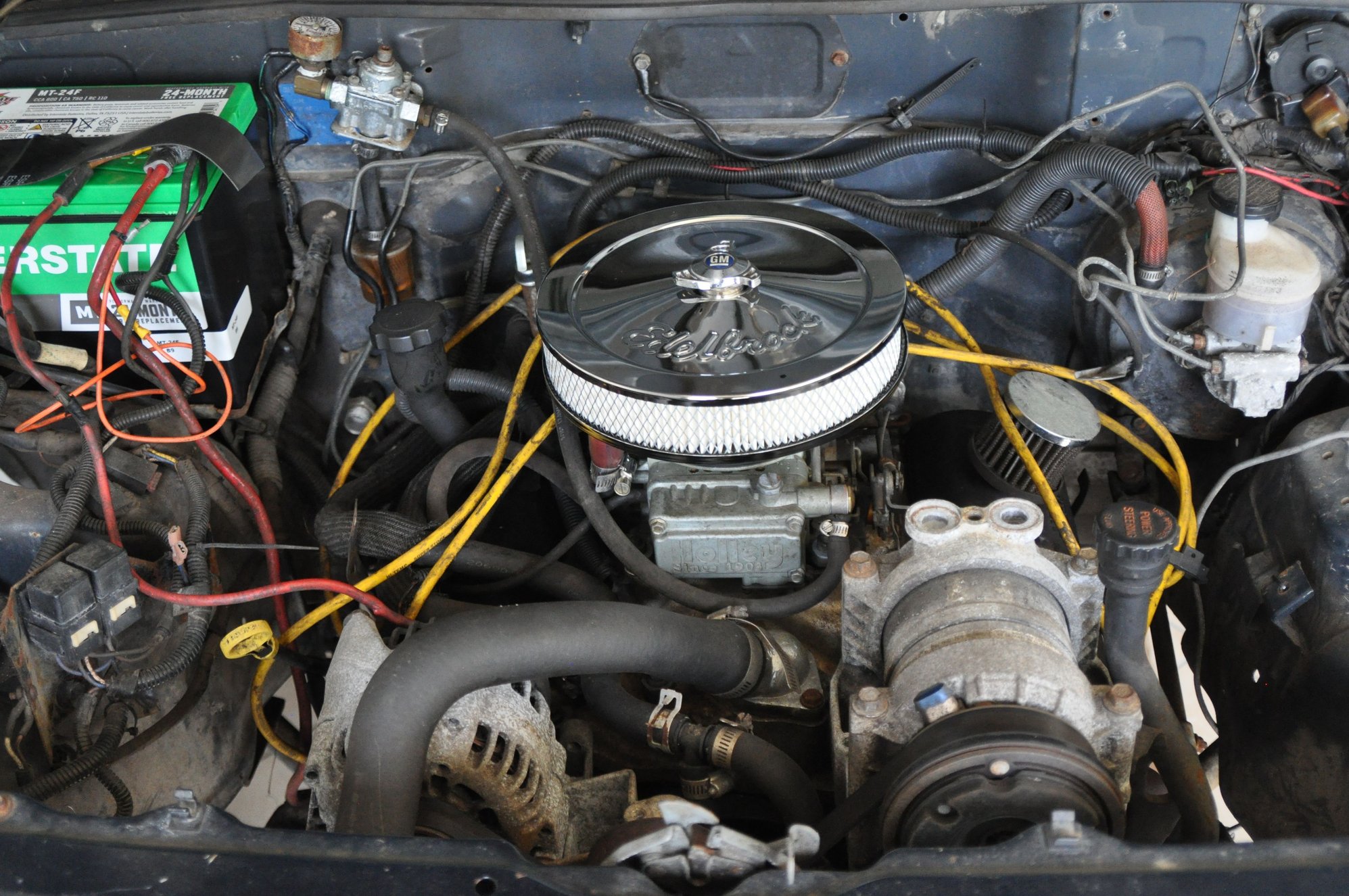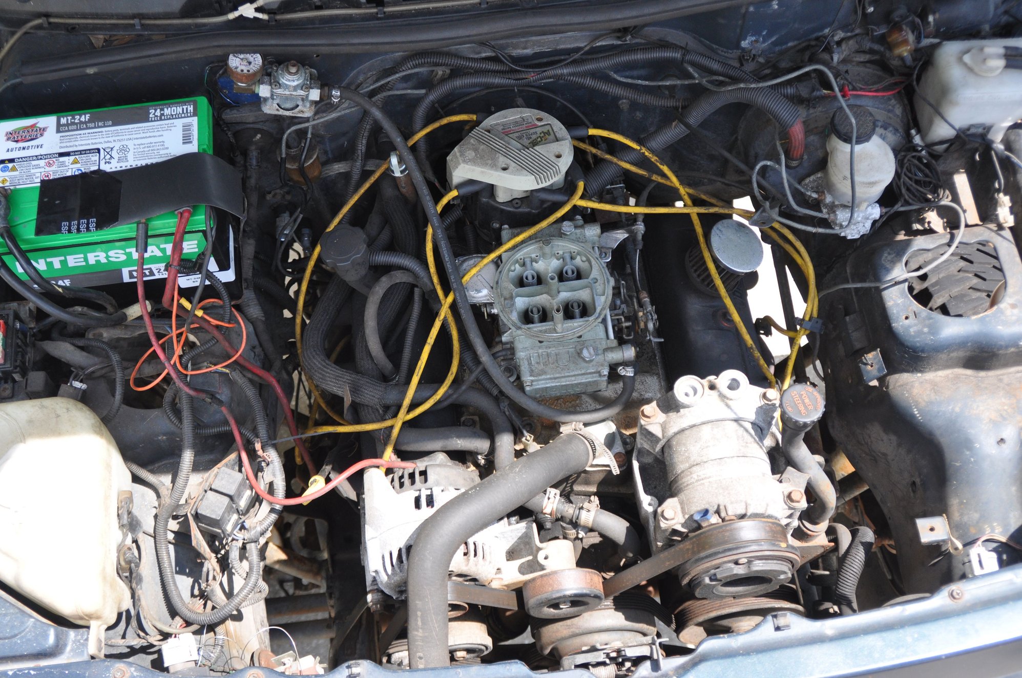4.3 Chevy vortec motor Runs Strong... Aluminum intake 750 holley carb Headers Nice cam Front push bumper Tires half meat Clean interior not torn all up Body very solid not rusted away *****I also have a extremely solid tranny and converter you can have with the jeep... 4L60e