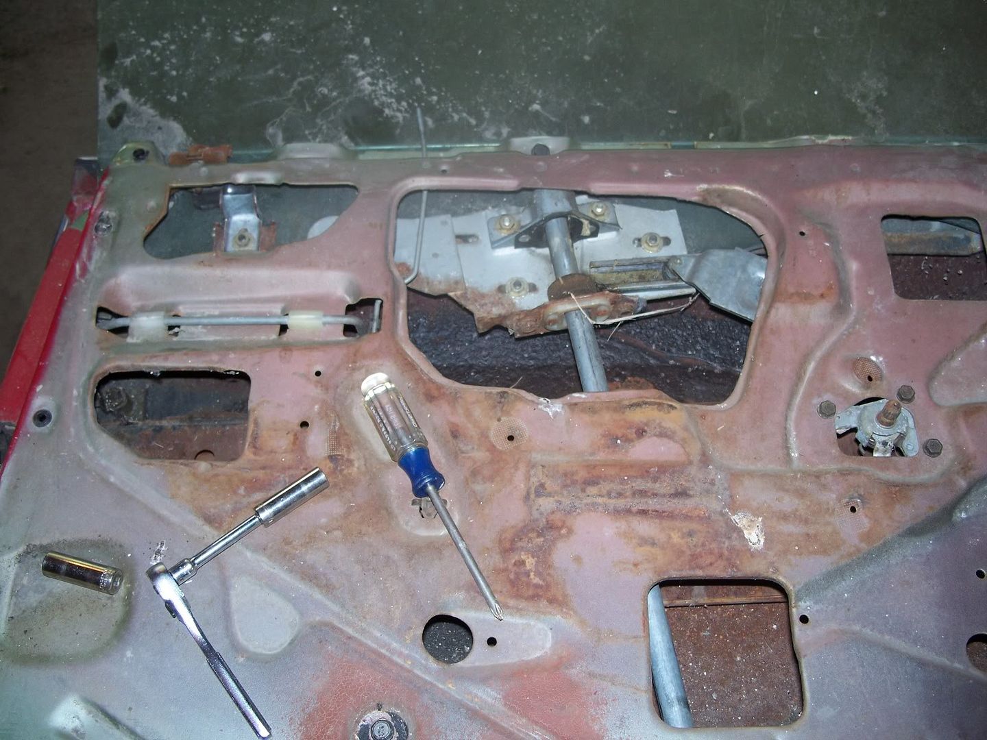 About the doors, no, I will not be patching these areas with donor pieces as these areas are VERY common for rot. I have broken the surfaces down to mild contours that I will hand form and weld individually. With both doors, I had to remove the lower support that ties the lower hinge into the rest of the door frame to get at the back side of the rusted areas as well as repair rust in the supports themselves. These pieces will be sand blasted by the end of the week (hopefully).