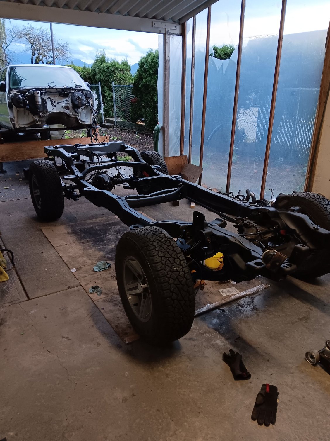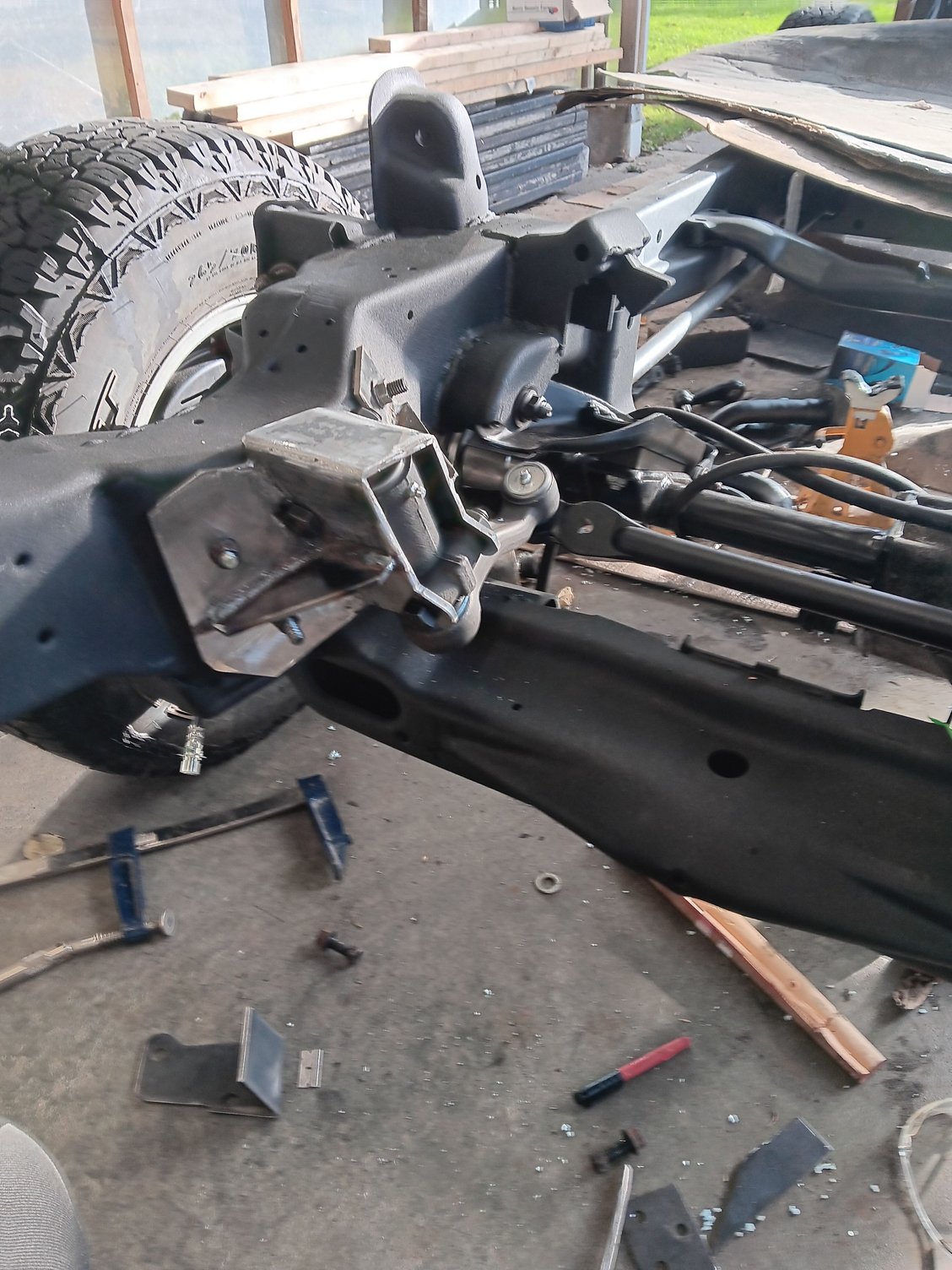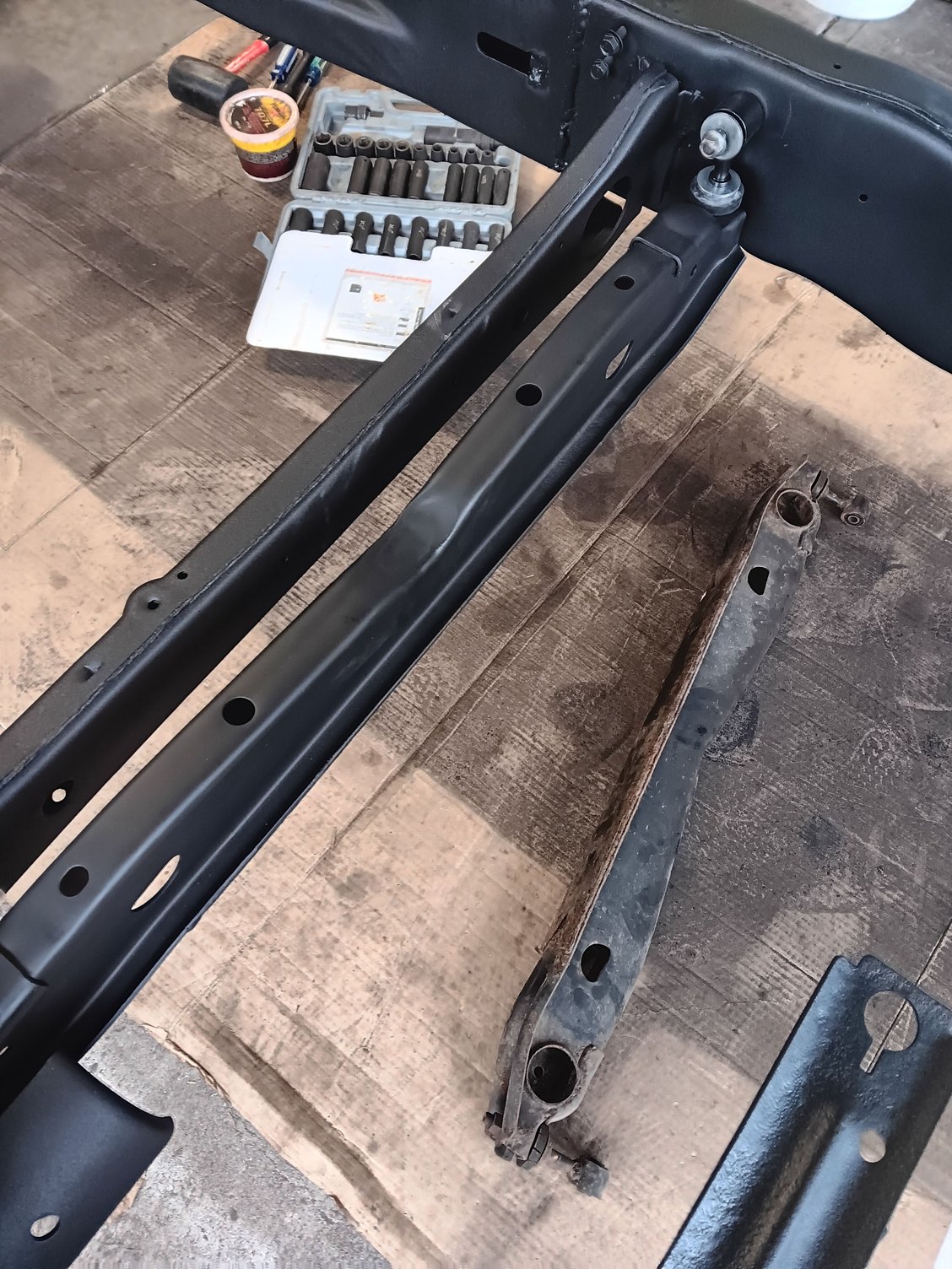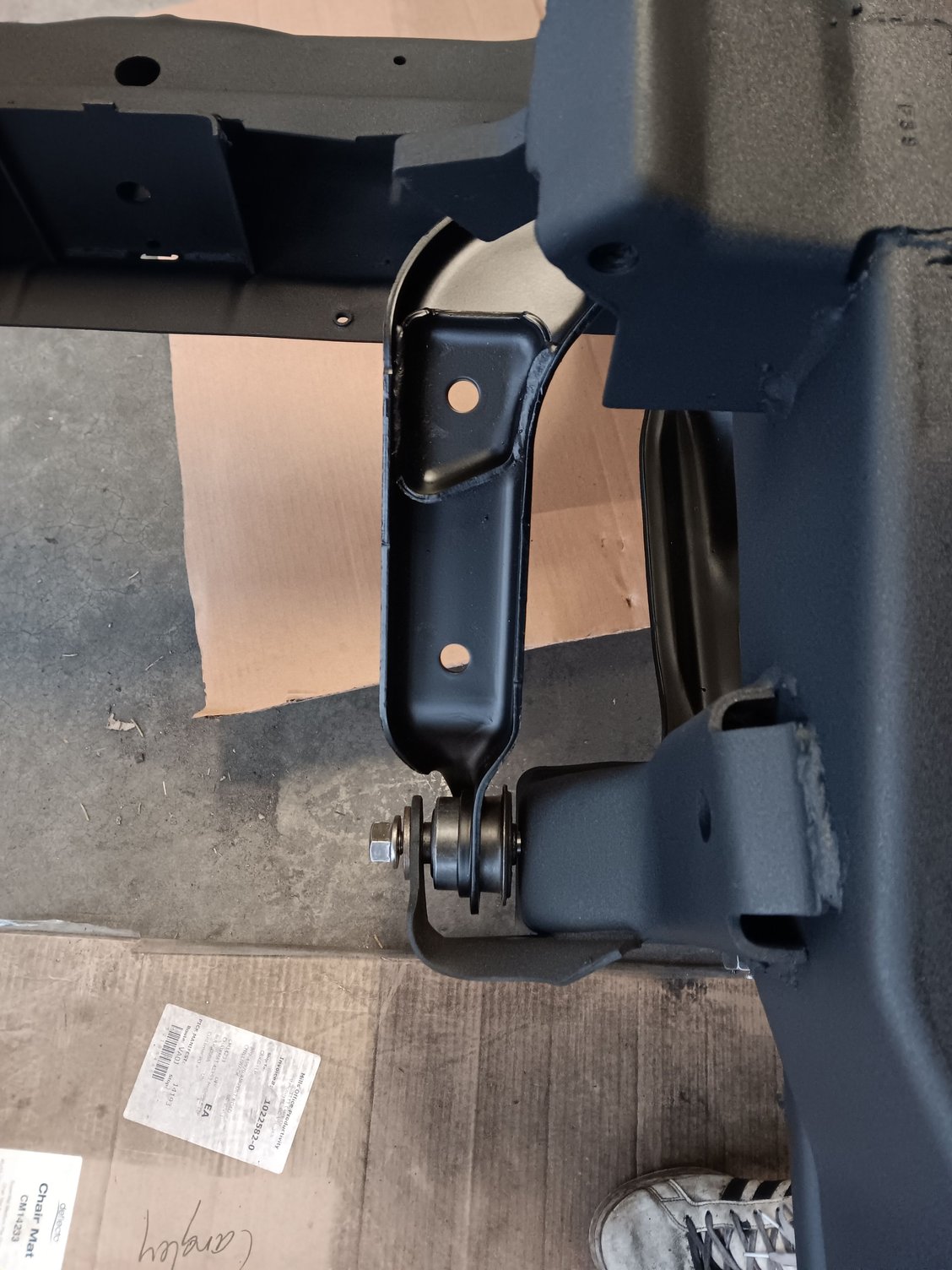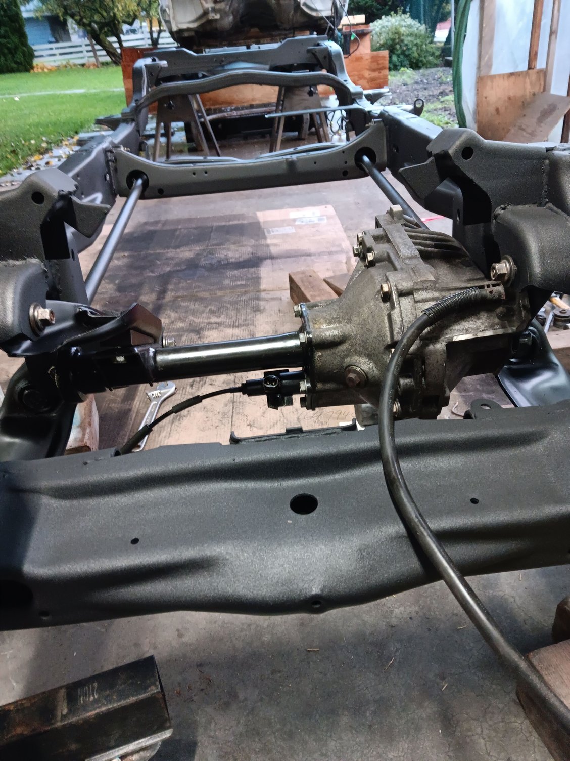 Finally, pretty pumped to find the last piece of the puzzle, the transmission crossmember. A ZR2 came into the local wrecker on Wednesday. Had the crossmember out in 15 min on Thursday morning. Stripped and powdercoated by Saturday. Ready to install. Don't have any comparison pics but will try to remember to post one in the future.