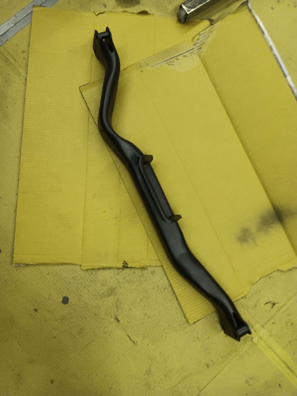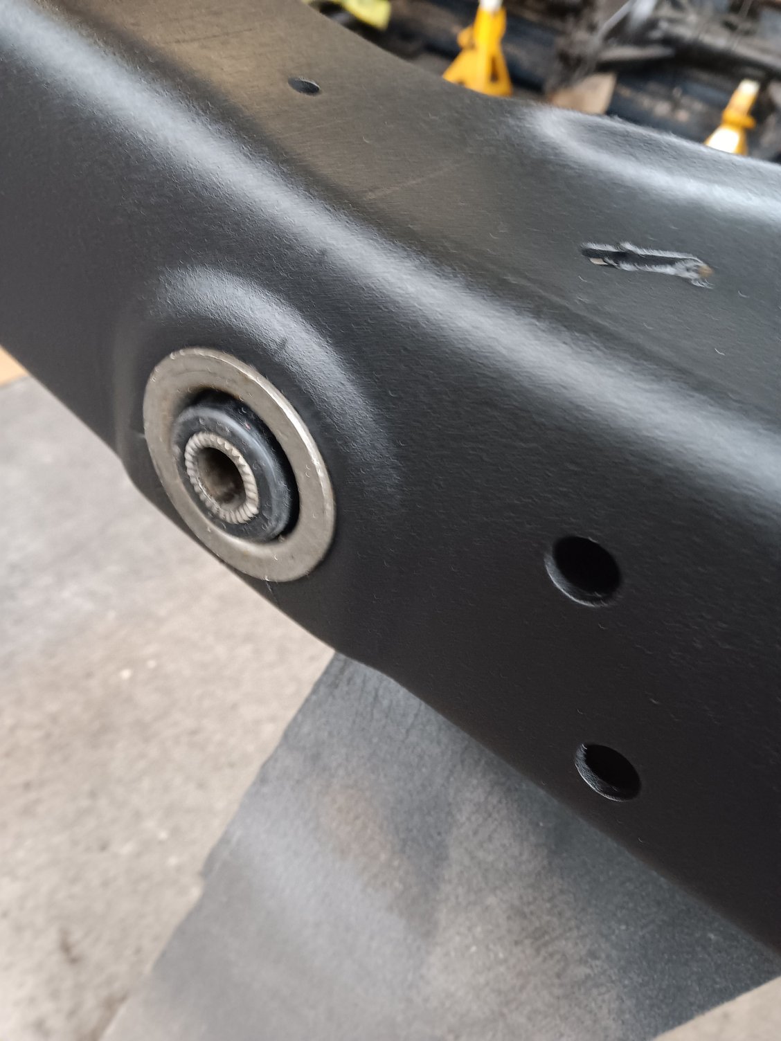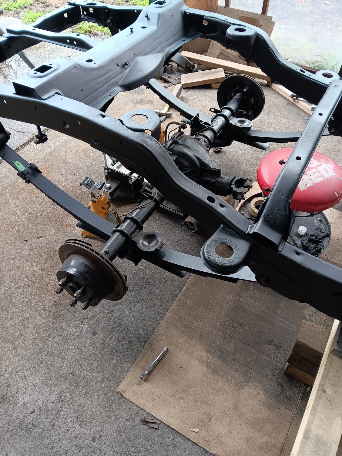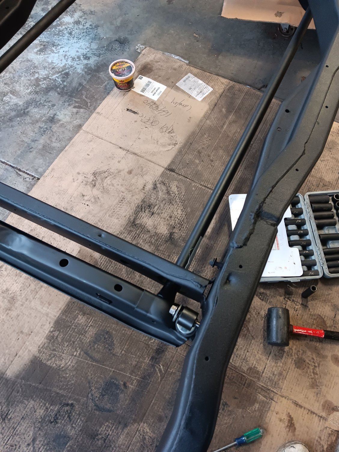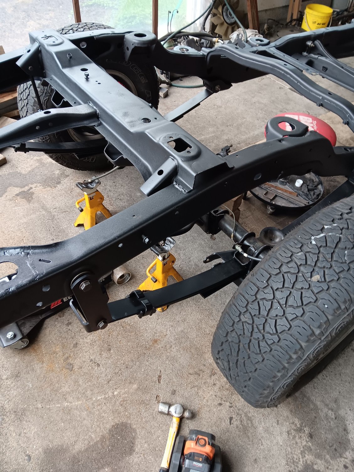 Finally, pretty pumped to find the last piece of the puzzle, the transmission crossmember. A ZR2 came into the local wrecker on Wednesday. Had the crossmember out in 15 min on Thursday morning. Stripped and powdercoated by Saturday. Ready to install. Don't have any comparison pics but will try to remember to post one in the future.