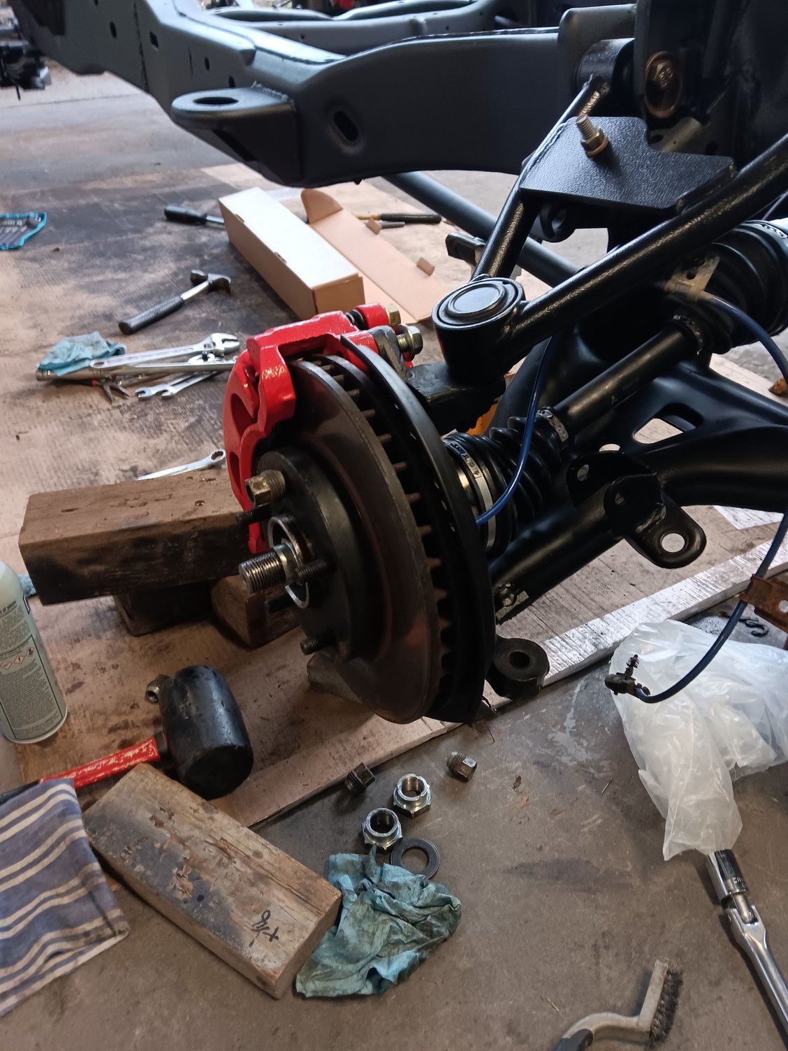Kept my existing rotors and hubs as they were in decent shape. Calipers were powdercoated and rebuilt with new hardware.