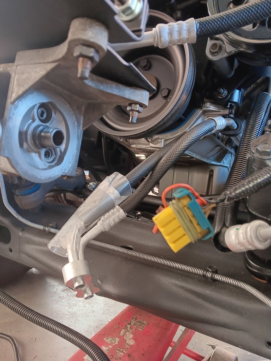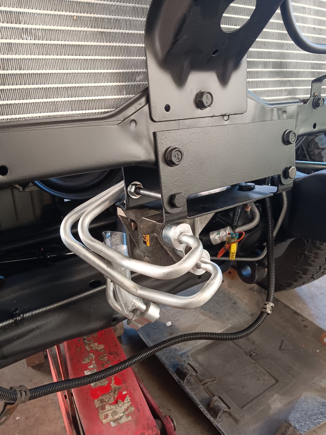 This is the remote oil filter extension made for the body lift. Also installed new oil lines.