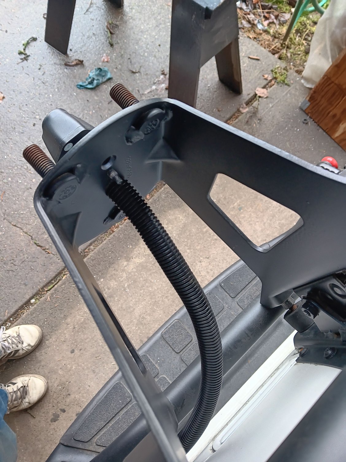 Originally wanted to run the wire inside the tire rack but that wouldn't work so it got zip tied to the rack and isn't too obtrusive.