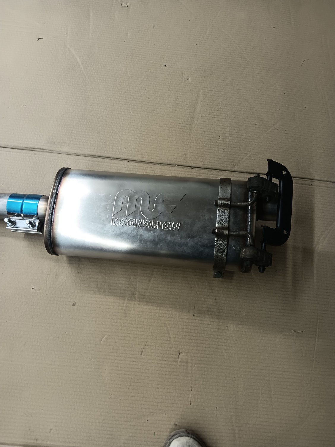 Most of the harness has been installed and mocking up the exhaust. The existing muffler was old and shot so bought a Magnaflow replacement.