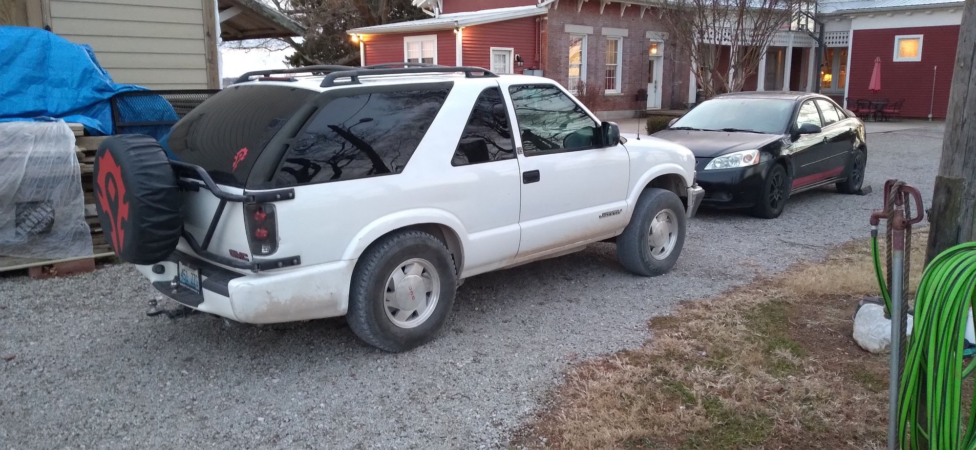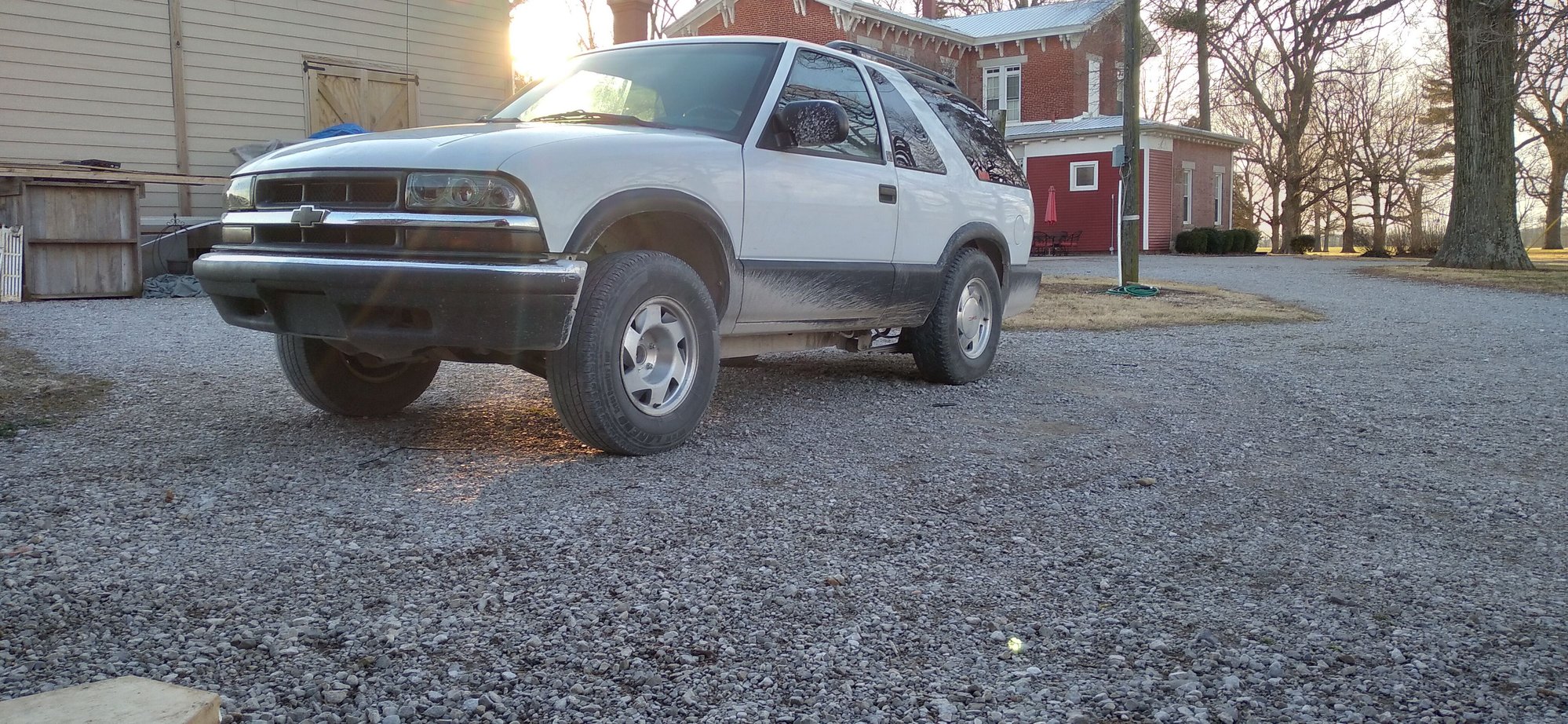 Jimmy finally got the rear dropped 3". Going to probably do 2" in the front and go from there. Dont need it crazy low since there arent the best roads around here but enjoyably low. And yes... I know its basically got a squat right now. Just trying to get the front drop right so it drives well. Besides that I plan on sanding off the bedliner as best as I can and making it white again and color matching rear window trim and grille/bumper. I give up trying to go for the offroad look on a 2wd, going to do what a 2wd is meant for. Street use! Sadly V8 wont be for another few years.