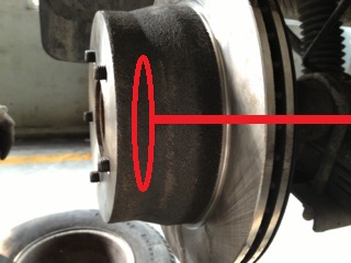 But to my surpise, when i put everything onto the rear brake, this old shaft is too short to reach the hub of the disc rotor, which are supposed to be tightly bolted up through 6 studs, and the gap is over 1.4 inch. however, by no means could i push the disc rotor further towards the shaft, coz the disc rotor contacts the park brake plate in the back.