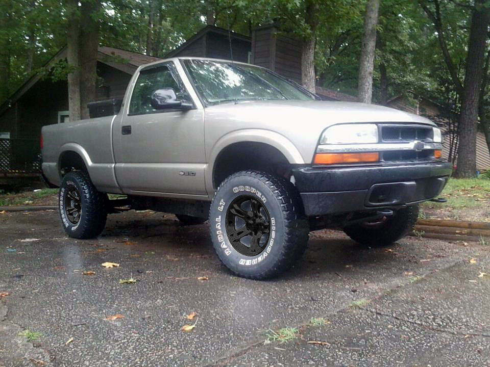 hey I've got an s10 with chrome wheels and id like to see what it would look like with black wheels. id also like some opinions on gloss black or satin black. i don't really care if you actually photoshop this picture but it would be nice. but if you have some pictures of pewter s10s lifted on black wheels that would work too.