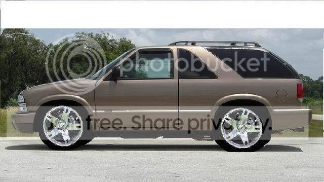 i was wondering if you could find a picture of a 96 chevy blazer 4dr 2wd WHITE and lower it roughly 4inches in the rear and 3 in the front... with these wheels http://superbuytires.com/Akuza/Creat...1=&p2=&finish=