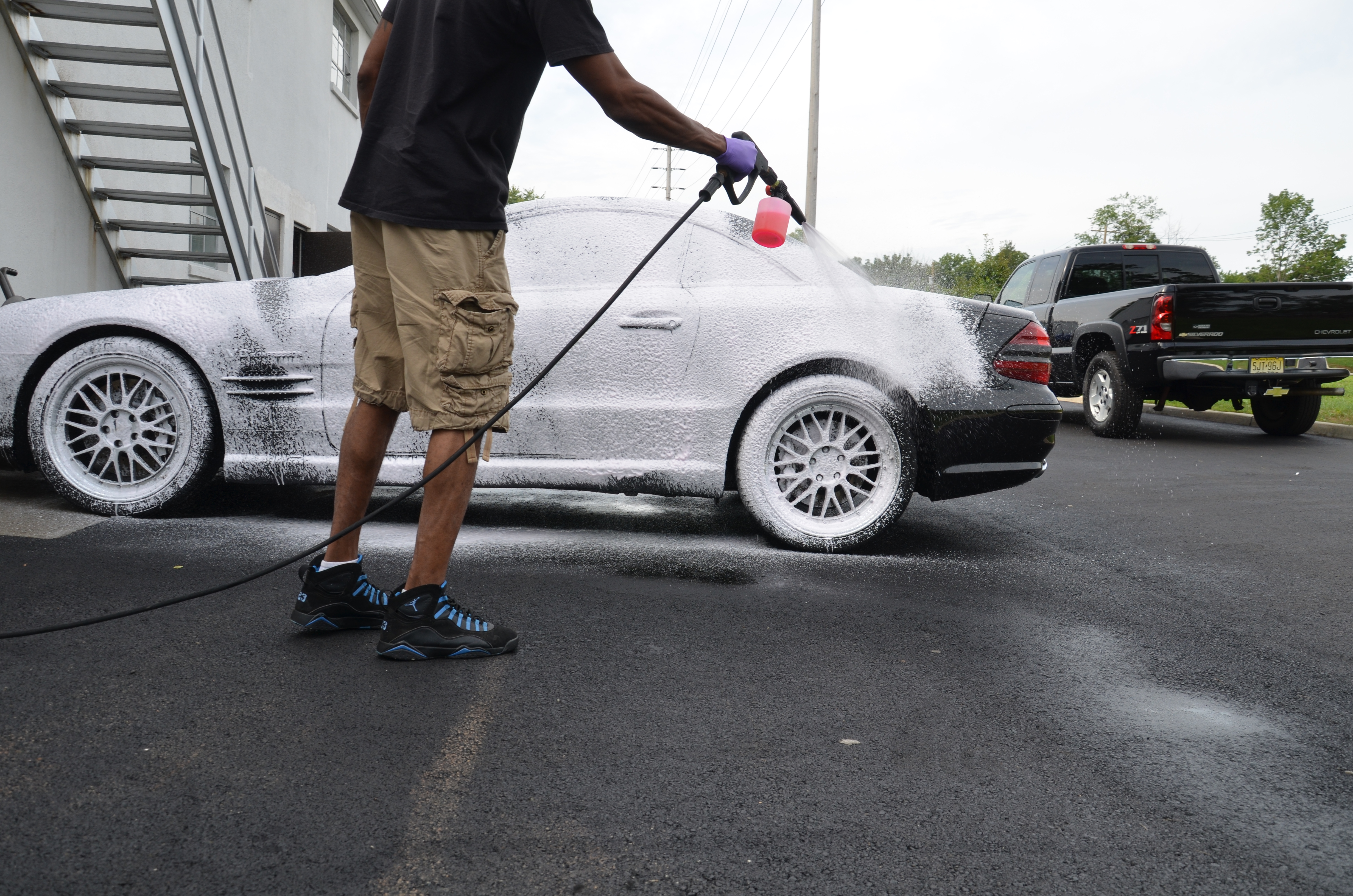 - Tires were spritzed down with Adam’s All Purpose Cleaner and washed down