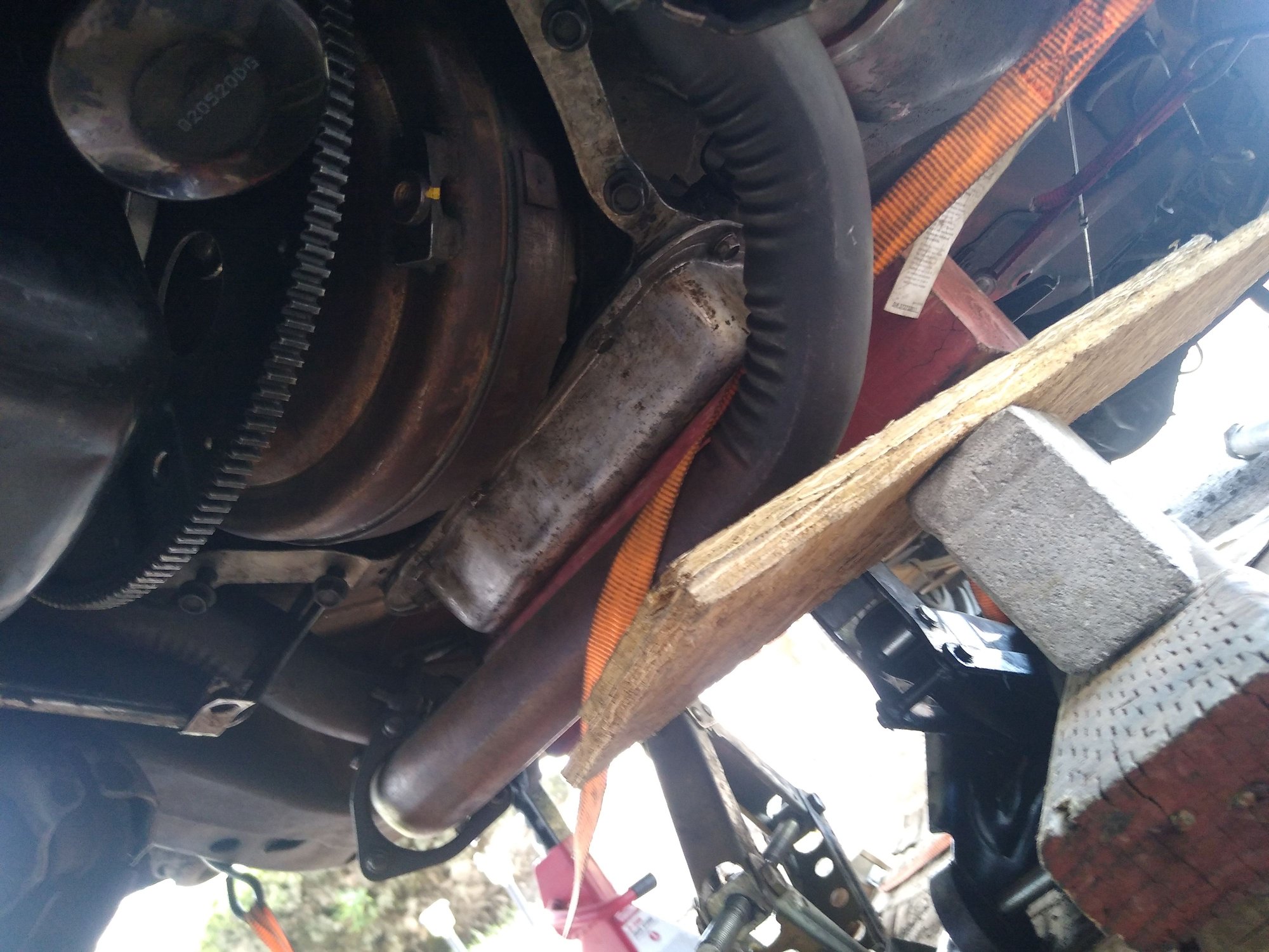 Ok so I got trans almost lined up I got one bolt in the houseing to the block. I've got one floor jack on a cart. (So I can move it around easier with the right surface, was the idea... Didn't turn out....) Also I have a bottle jack and a scissor jack to help transmission. But I can't get a good angle. Tried as many different ways I can think of but no luck. Any suggestions? I'm on the ground with jack stands holding truck up. pics to follow The transmission is wanting to twist everytime I get close. The two bottom corners of the bell housing wouldn't mate so I went to bolt one up top