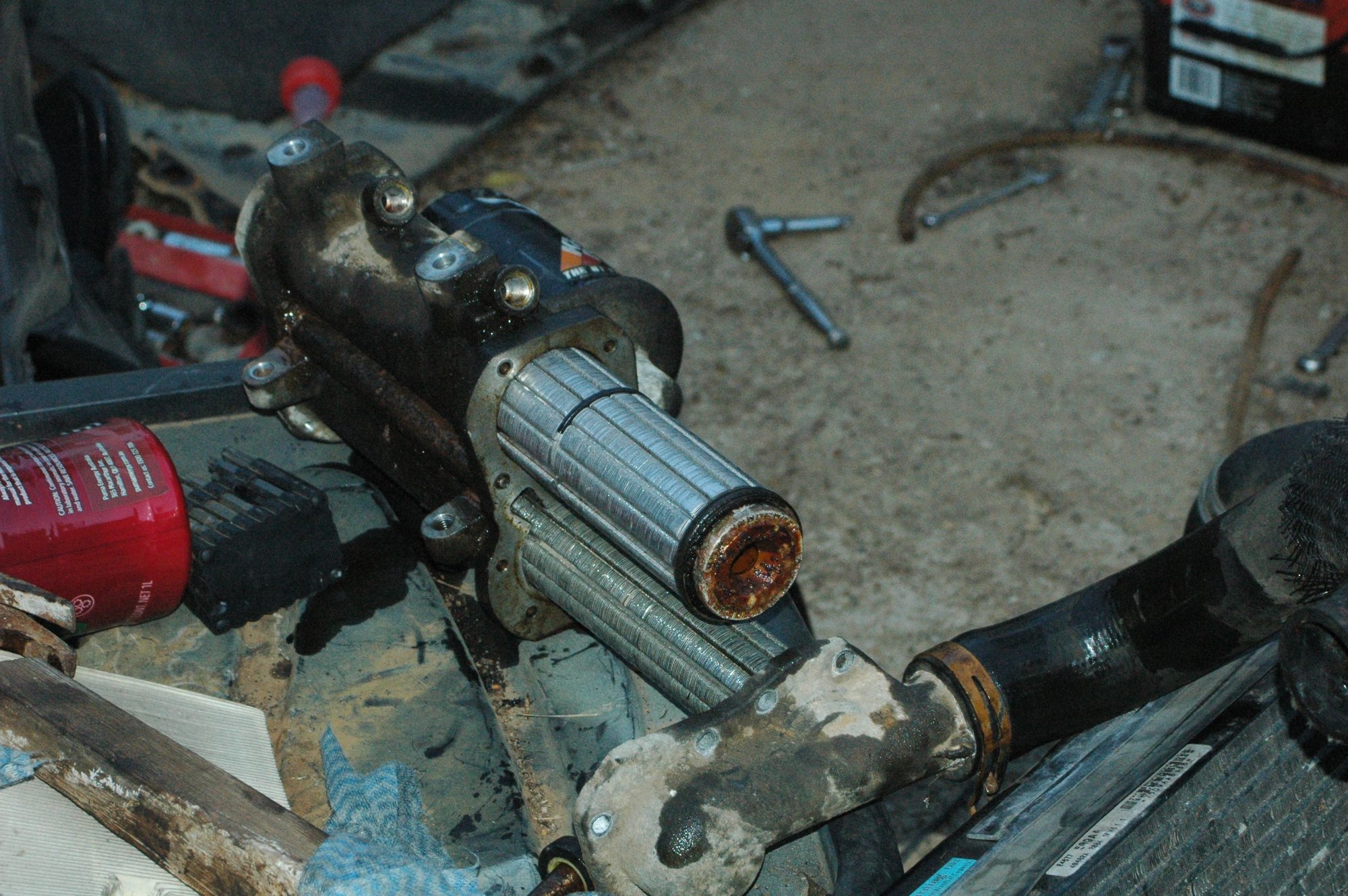 Replacing the heat exchanger with aftermarket oil and transmission coolers may be the easiest option if you cannot fix the heat exchanger.