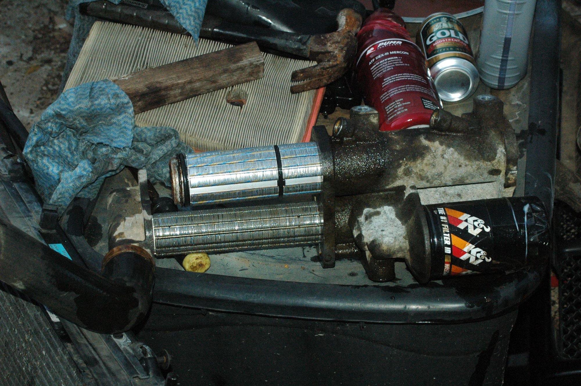 mine has a leak in it it only a pin point leak but its leaking from the transmission side in to the water