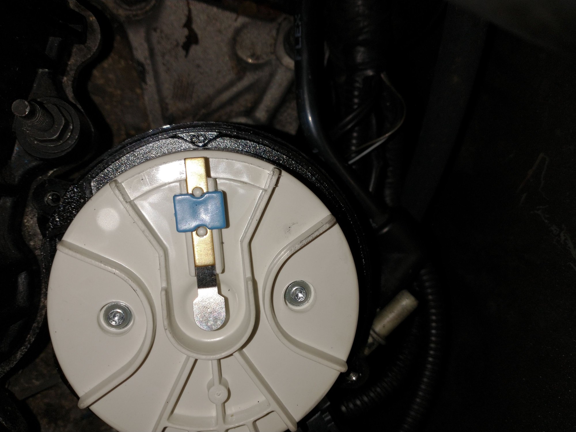 This is where I reset it. (Both balancer timing marks are lined up for both pictures. With it set here where it's supposed to be engine will not start. Acts like a normal distributor that is 180 out. ????!!!!