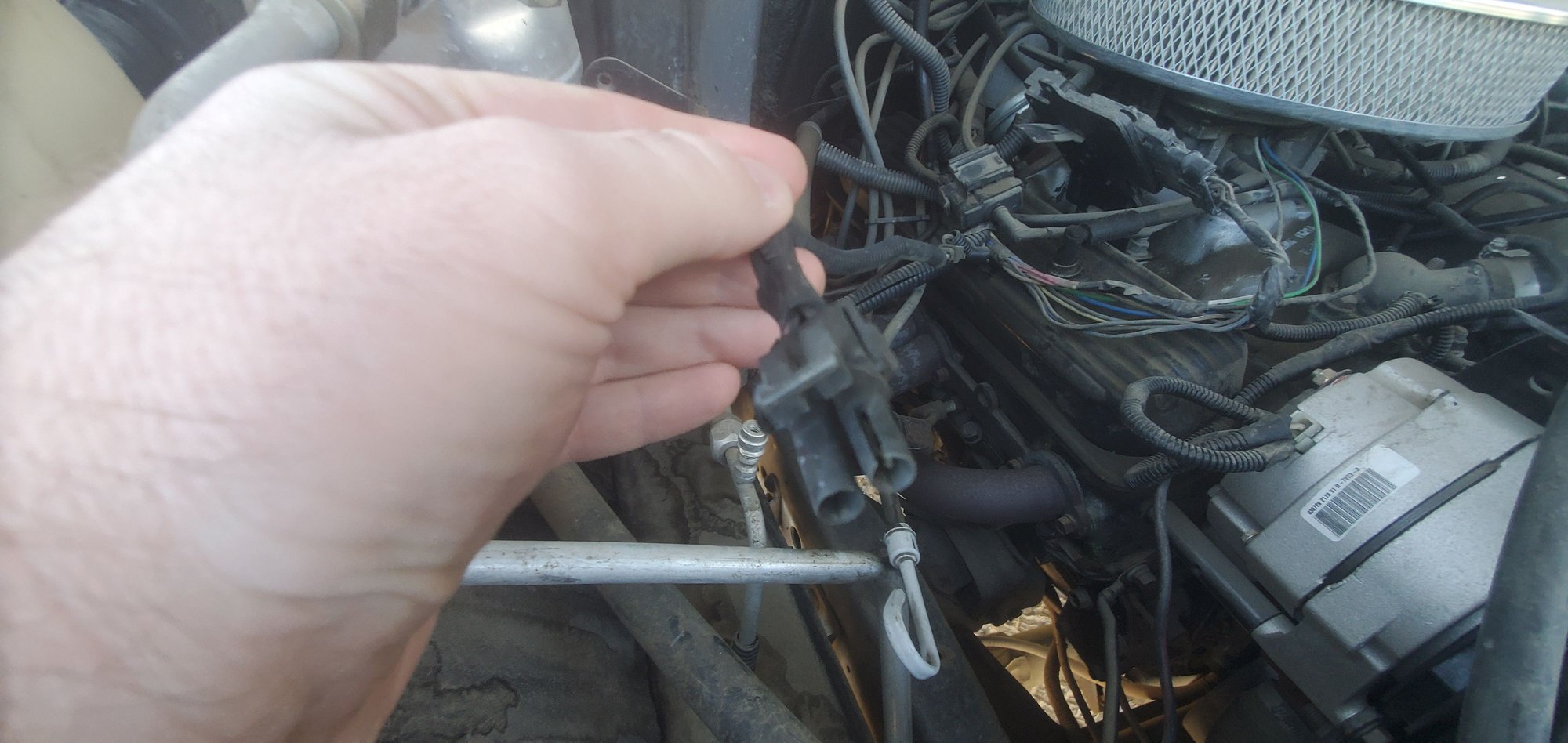 Picture 1 and 2 appear to be the connection for an intake air temp switch. But I haven’t been able to find whether or not the 87 350TBI had one or not. The engine bay wiring diagram doesn’t mention it, and I can’t seem to find one that says it’s for my truck. But the ECM wiring diagrams I’ve found show a line for it. Any advice you all have would be great.