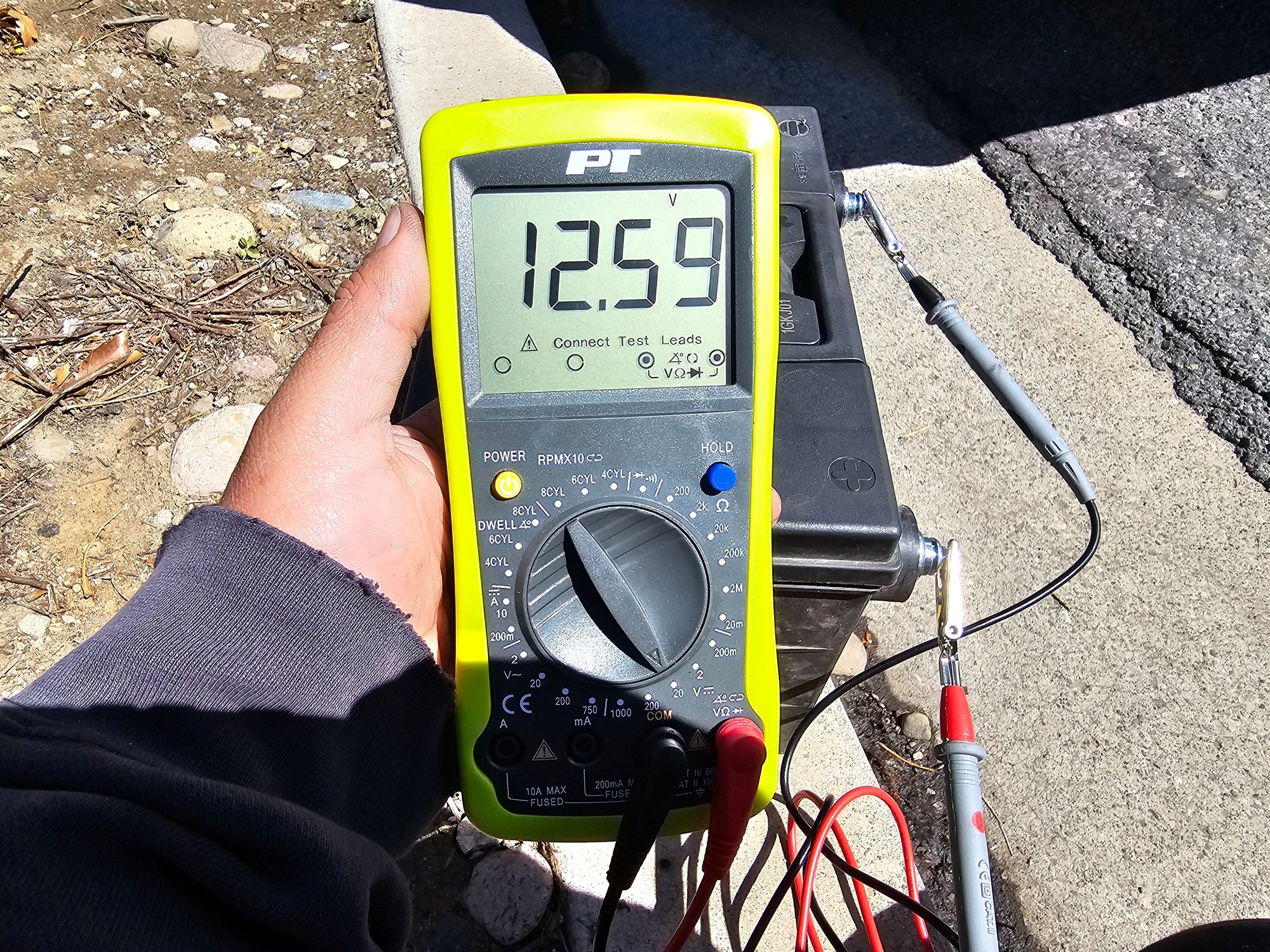 Hello George and Les. Thank you for the reply and I apologize for my late reply. Funky work schedule. So I had the battery out of the Blazer and did the voltage test and the battery was at 12.59 volts. I put the battery back into the Blazer and reconnected the battery cables and did another voltage test and it was still at 12.59 volts. Turned the ignition to the on position and volts did not move. Did the crank test and volts did not move still at 12.59 volts.