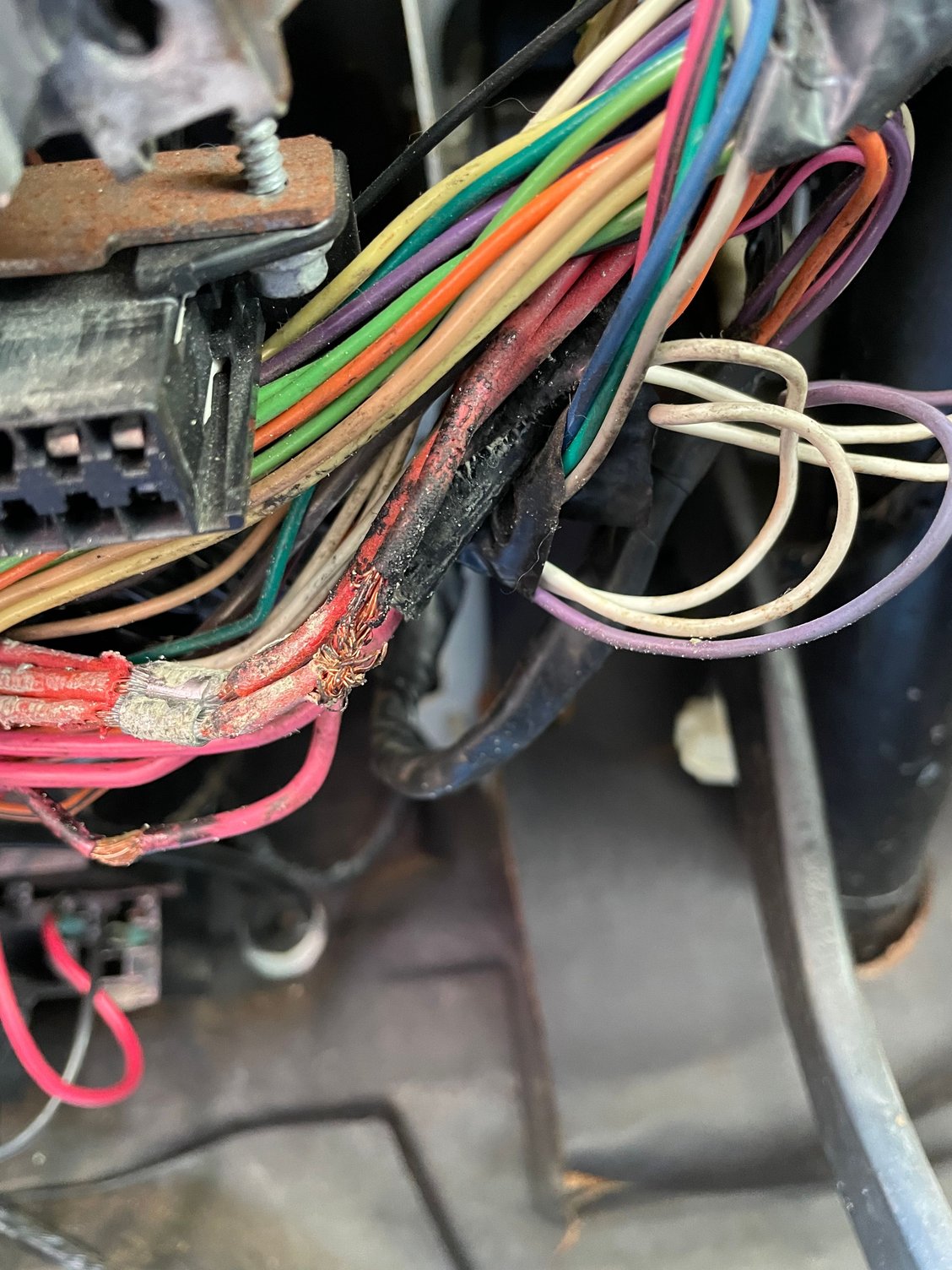 This is yesterday trying to fix some of it. Fixed now even though this is just to the light under the dash it’s like really people! As I’m uncovering old worn out tape and at this point I’m thinking that I should have just forked over the money to buy all new wiring harnesses and just rip out all the old! As I’m uncovering old worn out tape and at this point I’m thinking that I should have just forked over the money to buy all new wiring harnesses and just rip out all the old!