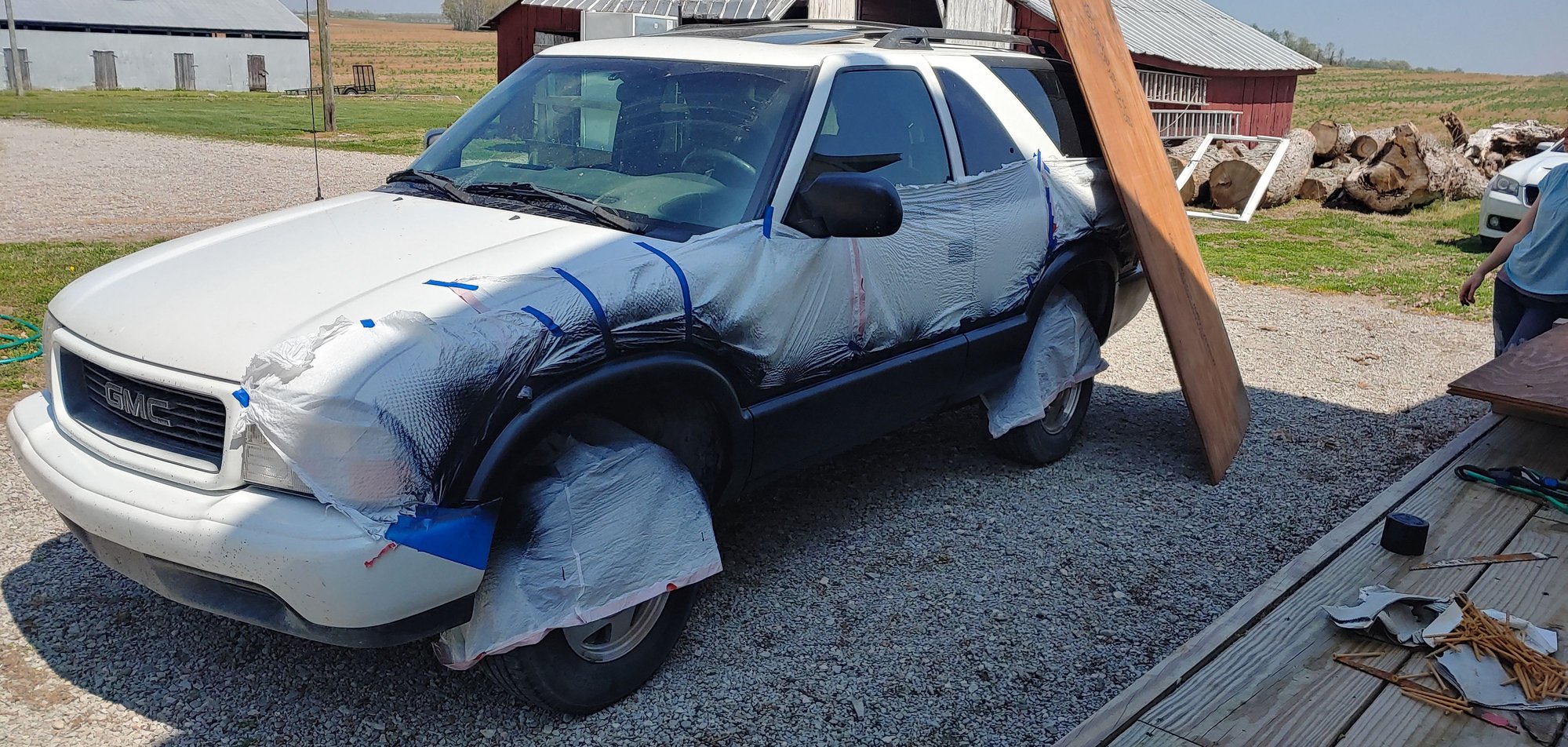 Well... So I wanted to make some sort of accent on my Jimmy. So I thought id take some bedliner and paint the molding black since I love white and black vehicles. Well... See for yourself lol
