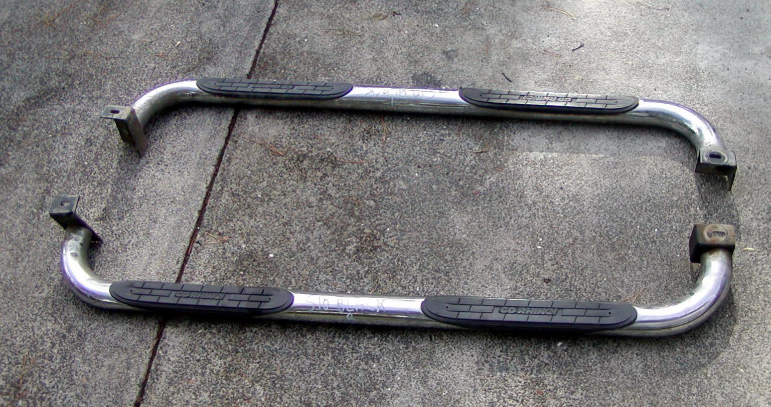 Got me a set of chrome nerf bars from the Chevy guys but, before I fit them I've taken them to the powder coaters - & guess what colour? you got it - gloss black. Should be ready early next week, but now that I'll be working in the city from Monday I'll have to wait till next Saturday to collect them. If he's open. (sometimes he does, sometimes he does not. Depends if the fishing is good or not).