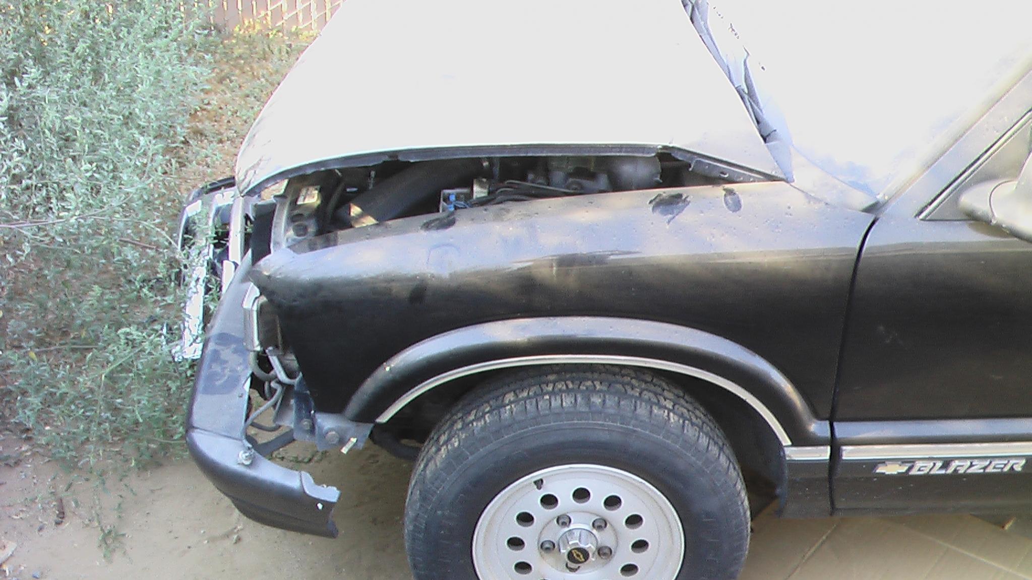 Hello..my neighbor is selling a 98 Blazer for $500 with a smashed in front end.He says it needs a new front end, radiator, ac condensor, hood. He says he can get everything he needs to fix it for around $500 at a wreck yard. I want to know if in your guyses opinion if its worth it for me to buy and fix up. and from the pictures what do u guys think will cost to replace things from a wreck yard to get it going again. The motor runs and the rest of the blazer is excellent just dirty. let me post some pics for you guys