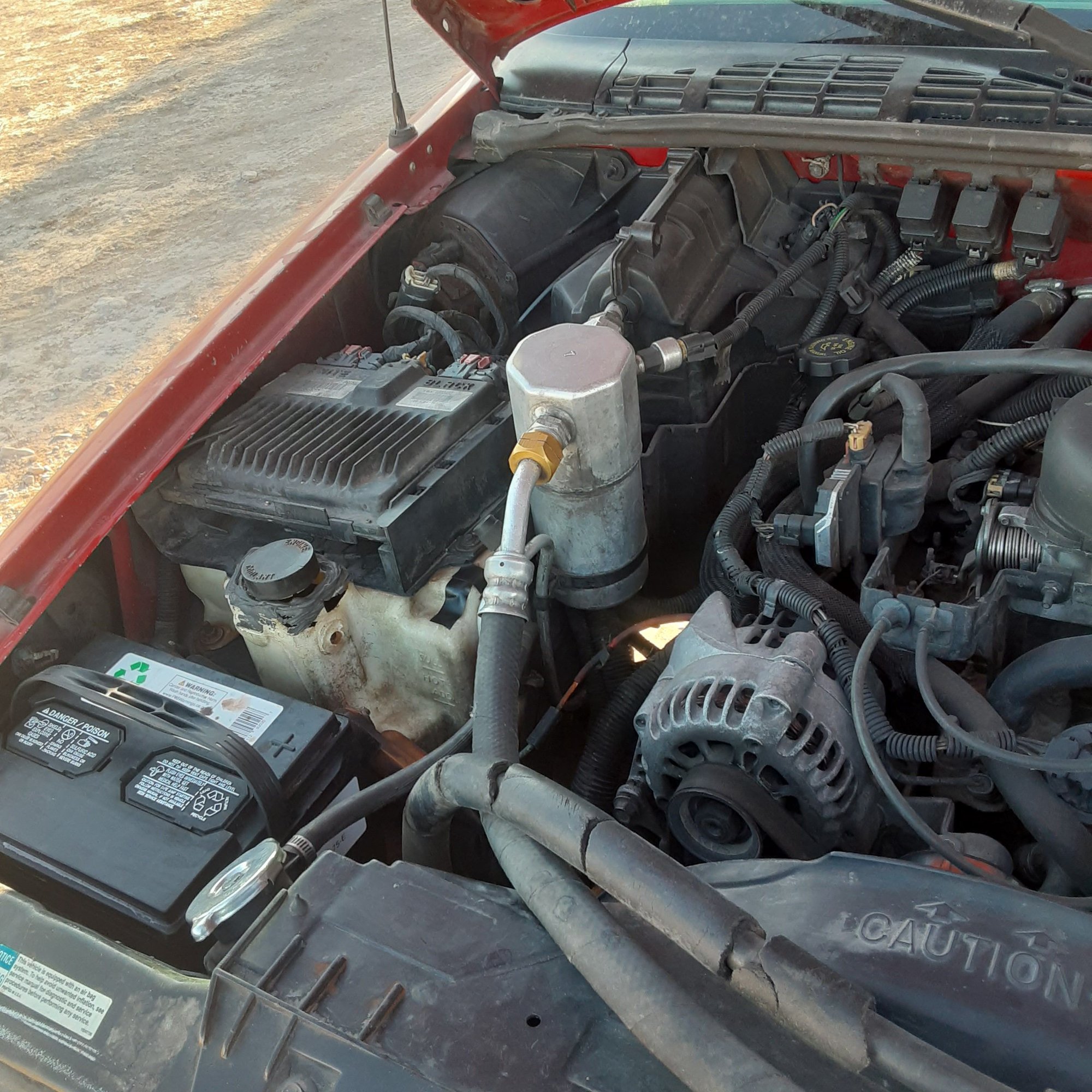 shes not without her list of issues, so far they are mainly body/cosmetic stuff. I did just get a new coolant reservoir tank, because the current one in there I barely tapped and the dry-rotted plastic broke off a leaf of plastic into the tank, so I was like ok, I need to deal with this asap. I'm actually going to go pick up the new tank in a little while from O'Reillys as they had to get one sent to that location. So flushing the coolant and radiator, then an oil change/new oil filter are the 1st 2 things on my list. She turns over easily and *knockwood the v6 vortec in there sounds pretty good. She's almost a blank canvas for me to make what I want. But yeah, just wanted to say hello and here are some pictures.