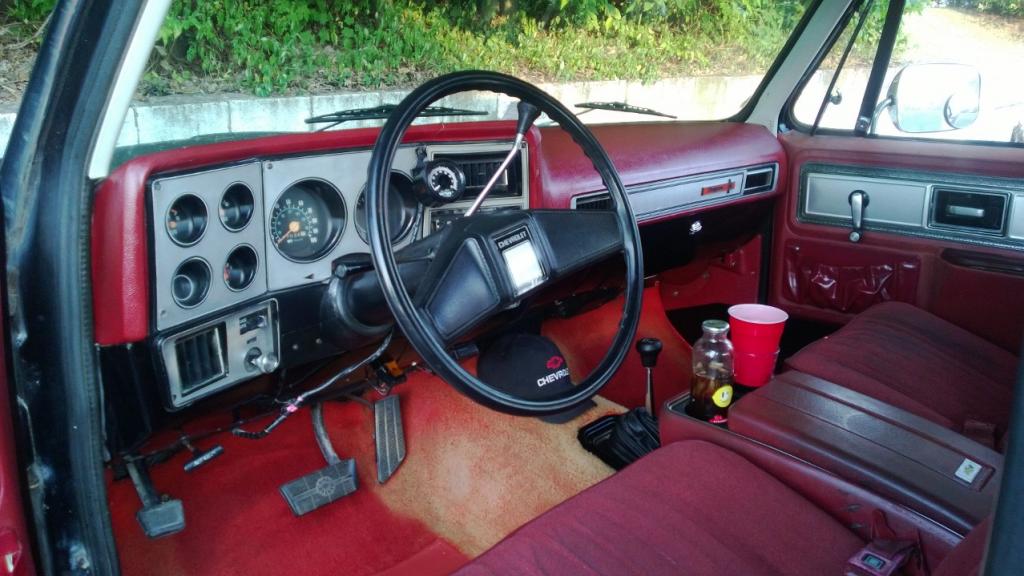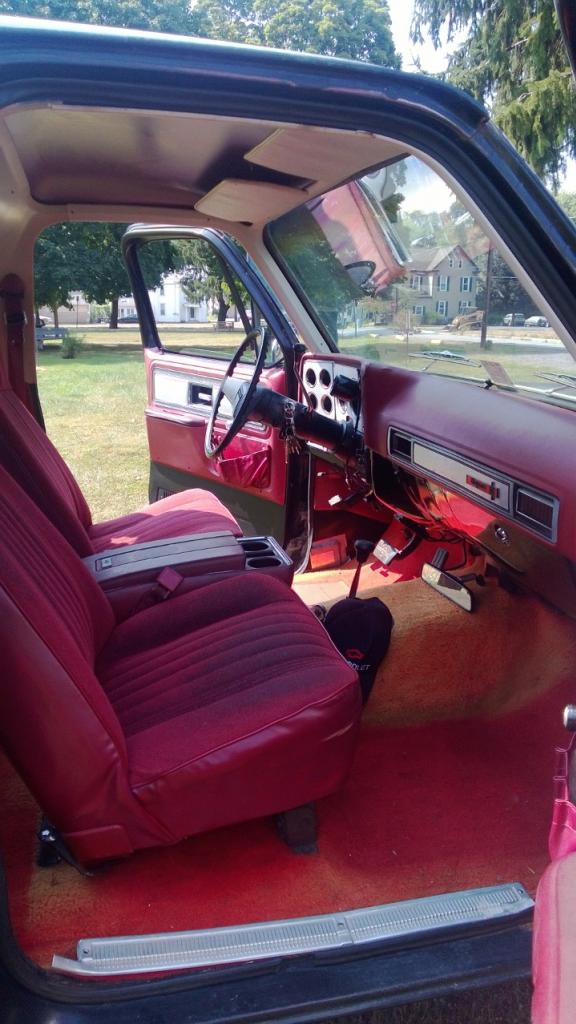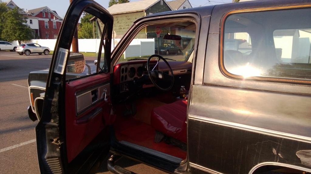 She sounds pretty good and its pretty loud, body is in great shape for 34 years old, and runs almost perfectly. Guy I bought it from thought it needed a head gasket and didn't want to do the work on it so I got it pretty cheap. Black with red interior. Everything works, down to the cigarette lighter but the rear window which I'm pretty sure the gear on the motor is stripped out. Has cruise control, but its temperamental. Overall, I think I got a pretty good buy! Drove it all the way back to central Pennsylvania with no issue, and took it out off roading as soon as we got back to break it into PA! Been driving it ever since!