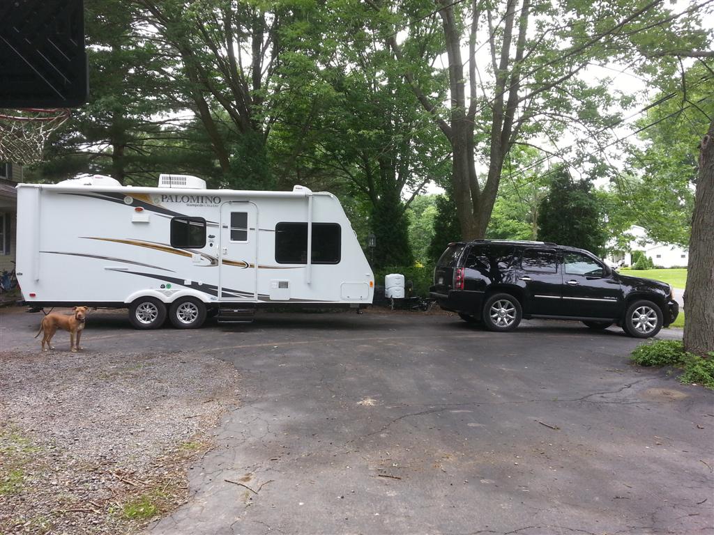 When towing the camper, you know that it is back there, but the truck handles it VERY well. The Tahoe did well for the most part until you got into hilly areas and then it wasn't so great. With the Denali, hills are no longer a problem! Tow/haul mode is also much better on the newer trucks with the included benefit of downshifting the transmission while braking to assist.