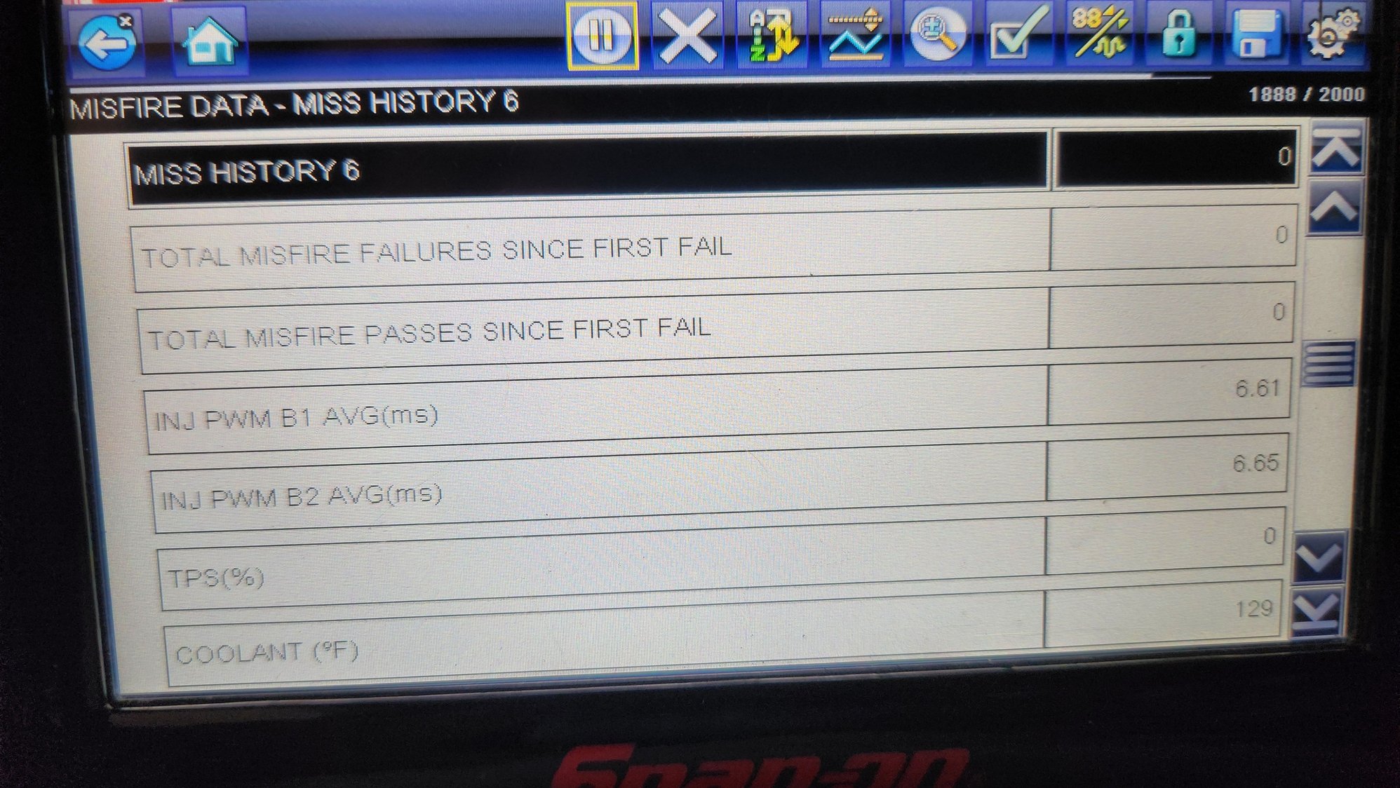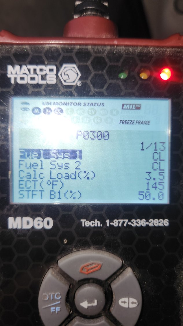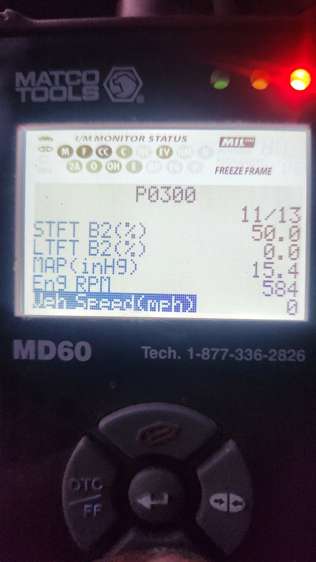 Thanks for coming back to the thread and the info. The light came on a few seconds after start up. Freeze frame showed closed loop. It came on while in the garage. Do they start closed loop then switch to open loop or vice versa, I can't remember. I can only see freeze frame with my little scanner. I'm hoping this week and friend will be able to come by with his Solus and we can watch live data. Will the better scanners show which cylinders are missing as opposed to my cheap one? Could there be an issue with the spider injection system that the computers wont pick up?