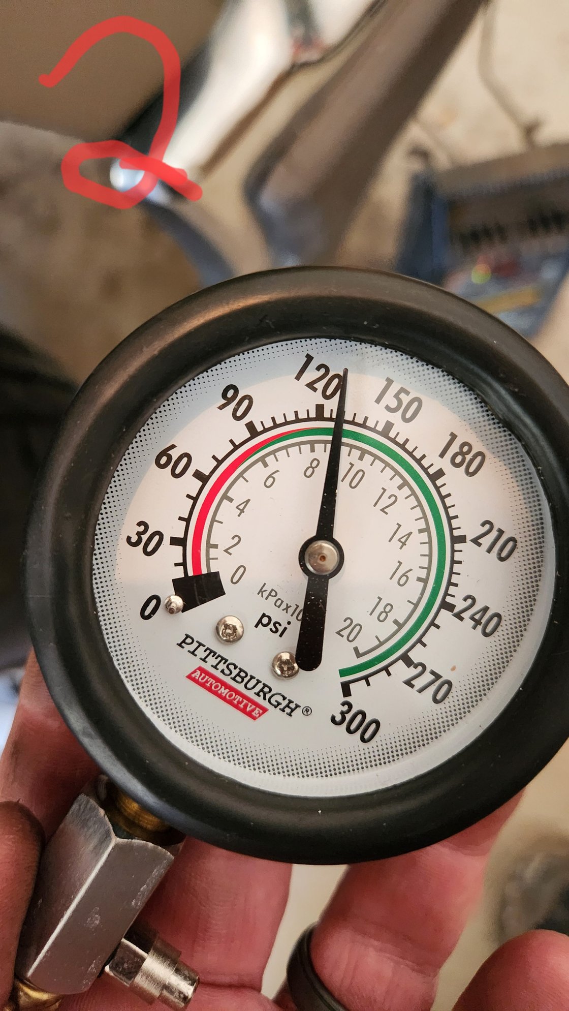 16lbs at idle. Open throttle a little dropped to 15lbs then level back out at 16. Needle very steady No jumping or quivering. SMOKE TEST: I bprrpwed a smoke machine and found and no leaks found.