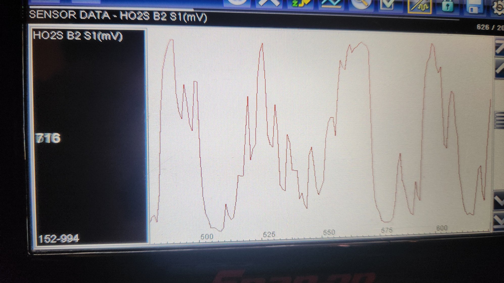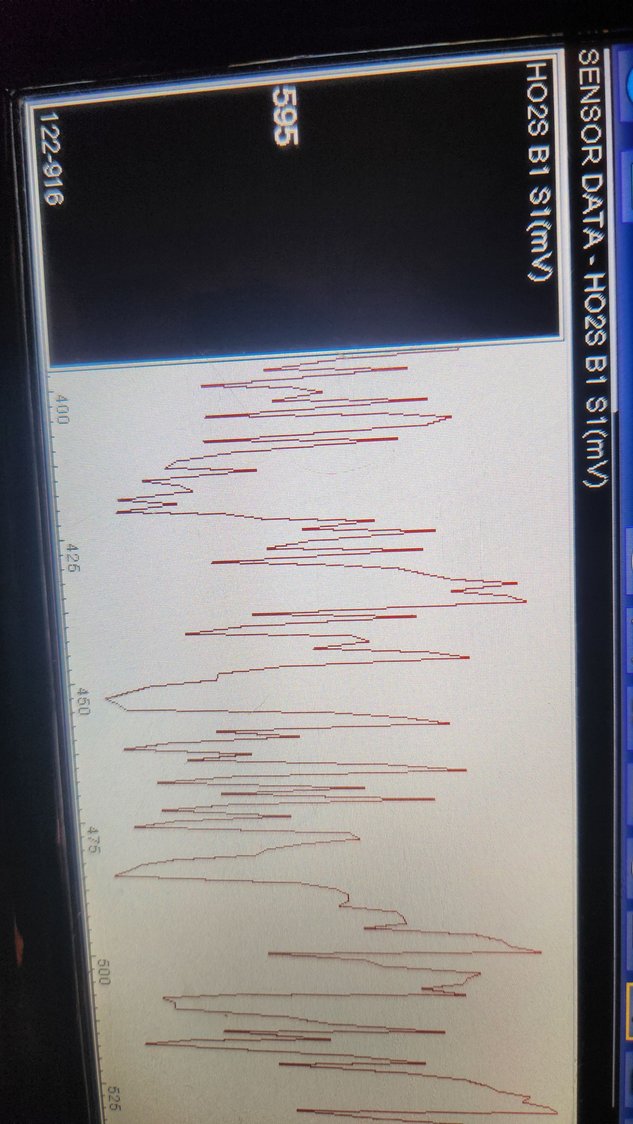 I was able to graph the o2 sensors. [Pics below]. I took pics of B1S1, B2S2 and the downstream sensor as well. I would rather someone look at the graph and decipher whats shown. I have a vacuum gauge, however no connectors that are suitable to go from the brake booster hose to the gauge. I fashionedan uncut nozzle from a tube of rtv [dont think it worked], it was either sucking by or i have minimal vacuum, and a large leak i havent identified yet.I wont be able to look at it again until Saturday. I'm also going to borrow a smoke machine to help locate any leaks that might be present.