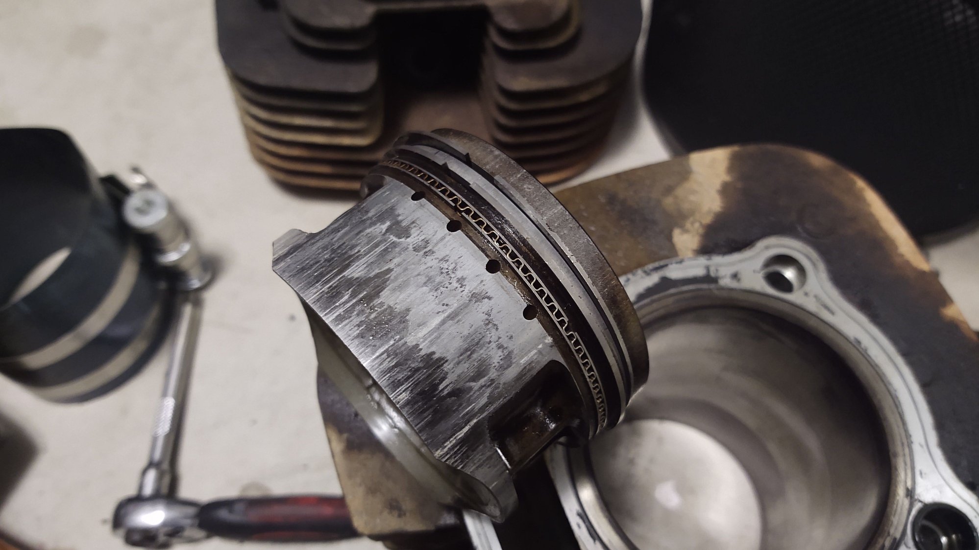 Found MAJOR scoring on the piston skirts and some markings on the walls of the cylinder. Safe to say that's where the noise was coming from... I can wiggle the piston around in the cylinder an uncomfortable amount, so that was probably contributing to the noise too lol. The oil control rings on the piston also seem like they're not right. Not locked up, but they don't expand out as far as the compression rings, so that might be where some of the oil burning was coming from. That and I'm sure the valve seals might be a little to blame too.