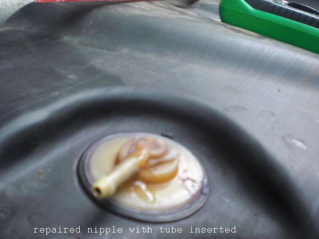Mike I hope that works out for you but I have more faith in fixing the broken nipple, than in trying to glue or epoxy something to the tank plastic... which is what I tried to point out. Besides it's faster and cheaper.