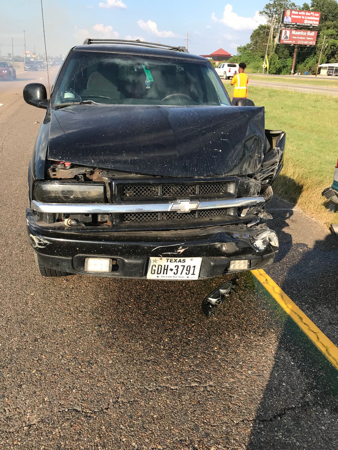 Well I was headed to work today when another driver hit me from the side forcing me into the back of a parked truck on the shoulder