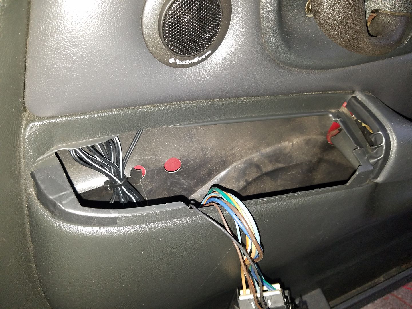 Got a jump start on this weekend's project when I got home from work. Installing new Rockford Fosgate components in the front doors (replacing old JL ones I had in them, as the driver's side tweeter has stopped working...), as well as installing some new pop-in clips that hold the door panel to the door. I also worked on silencing the door panel a little more using some electrical tape where the clips popped into the panel. I also went another step and used some extra door edge trim to run the edge of the panel where I could TELL it's been rubbing against the door, and also put some electrical tape in some strategic places on the window switch to make it not squeak so much. The whole assembly just feels more solid on the door now and there's FAR much less squeaking coming from it... Have yet to drive it so who knows about the rattling lol. Going to knock out the driver's side tomorrow and then we'll find out!