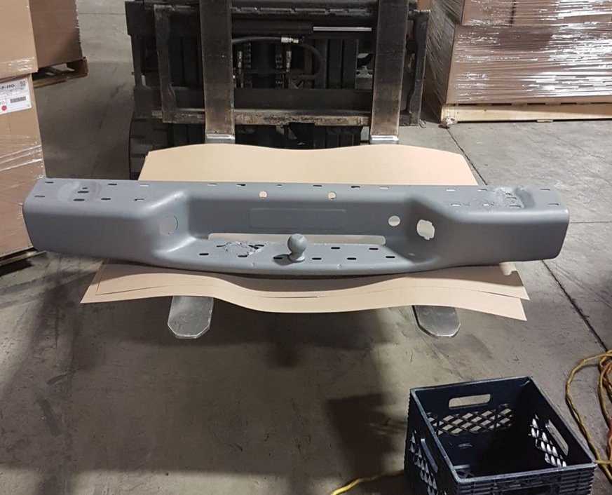 Old Yard bumper Cleaned up a little Primed Painted and installed Plastic piece behind drivers front wheel, never had one from purchased a year ago. Old crappy plastic New aluminum