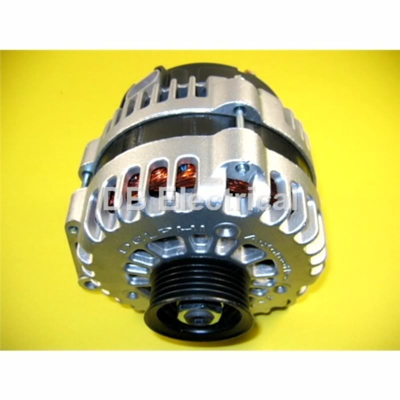 250 amp beefed up AD-244 alternator from DB electrical. I've never had a high power audio set-up before and always had to bump at high RPM's to keep stress off the electrical. Now I can slap all day long. 250 amps at 1200 RPM, 125 at 600 RPM, WIN!