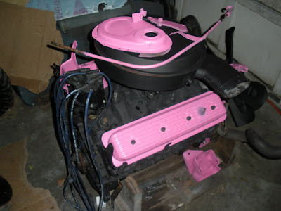 ChevyBlazerChick, that engines lookin' purty. Maybe some thin black lines on the pink parts would be cool I think. Almost look like pinstripes on a suit. Looks great! And too big a cam?... never heard that one before lol.