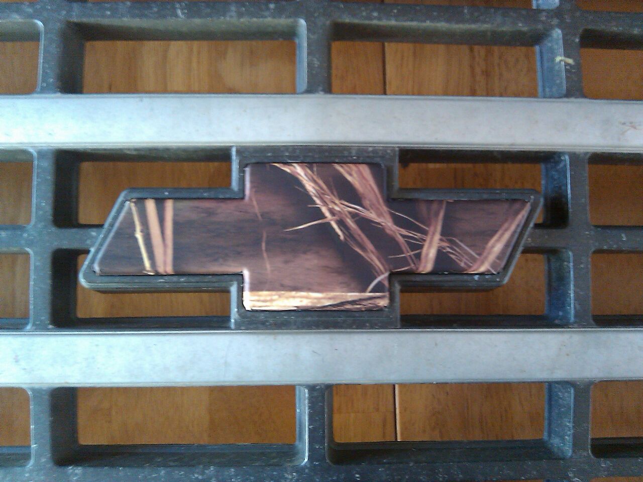 Yesterday got my grille guard welded on, 4 inch tip put on, and today I got my Chevy sign covered in camo vinyl. Its professional by any means, but it looks decent.