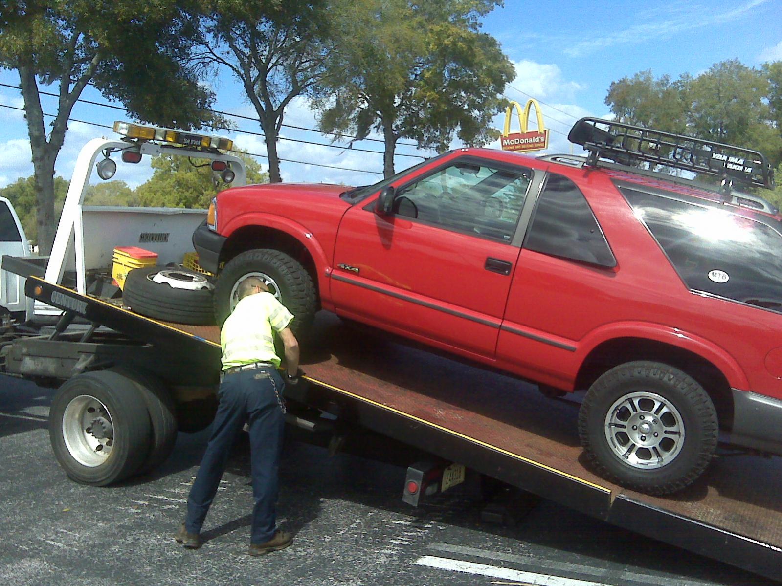 i broke my transfercase in my k5 going into the entrance of the place my very first time offroading lol. i just towbarred it to my dads house with my s10, only 2 miles away so i just went slow.