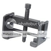 Using a two jaw puller will do nothing more than damage your corssmember. You can use a C-clamp but it isnt very safe.