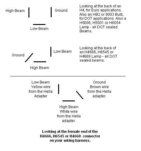 I own the 2-door design with the closed beam lights and would like to change over to the 4-door design with the composite light and slightly different grill. Other than splicing into the wire connectors to change the plugs for the high and low beam halogen bulbs, is this possible to do? Will the headlights assembly bolt up to the front core support? I would really like to do this and was wondering if anyone out there was successful? I read a lot of online forums but, not getting a clear answer on how to tap the pigtails into the existing single plug that goes into the sealed beam. I need a wiring diagram. I ordered four pigtail plugs from Dorman, two 9006 and two 9005 connectors for the low and high beam bulbs on each side. What wires do I tap them into on the harness for the low and high bulbs? Also my vehicle has Daylight running lights. Everyone says this is so easy but, I cannot find full answers. Maybe someone has a clear picture of this they took of the wires the matched up? Thanks!