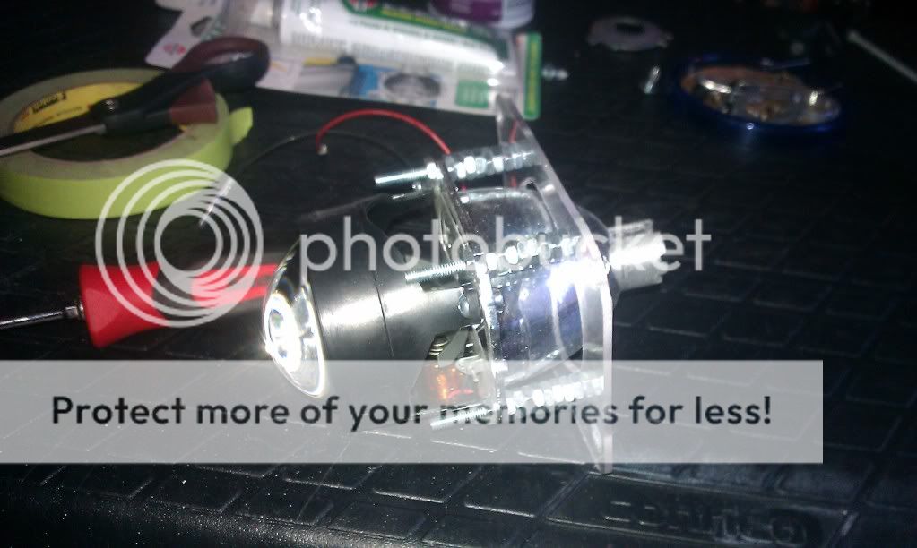 I started out with the ebay projectors, Note they are installed right the projector was tilted down in it so i had to adjust it that high to get it right.