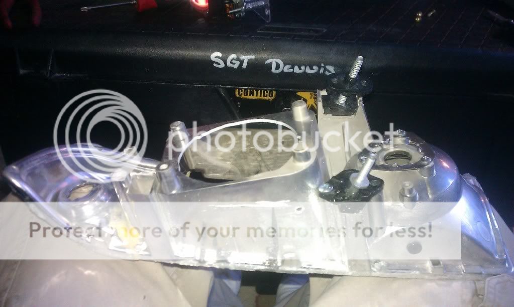 From there i test fit the light assembly in place, Covered the entire back with foil to make a plate to close it off. Once that was shaped i covered it with JB weld and let it dry. Removed it trimed it down to be a filler plate then siliconed it into place.