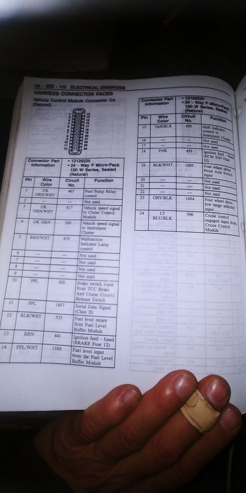 Also note this is a '97 Blazer manual and is a reference. If you don't have a Jimmy manual, go to Alldata.com and buy an online subscription (they have easier wiring diagrams than a manual) for your truck to insure circuits and pins in the connector are the same. I think they are, but I wouldn't swear to it. I suggest using manual/schematics for your specific truck, just in case.
