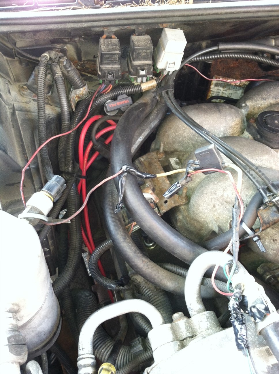Hi, I have a 95 4WD Blazer. The AC has not worked in the two year I have owned the truck. The previous owner said it just needed to be charged. I recharged the refrigerant and no luck. There is a switch on the dash was installed by the previous owner that I was told was for the AC Compressor. The switch lights up but the compressor doe snot come on. I found a connector on top of my alternator with a green and black wire. The black wire feeds into a butt and end connector and comes out red with a fork terminal that is unattached. There is also a green wire that goes into another butt and end connector and comes out yellow with a 10 amp fuse another connector now it is red and runs under the engine and screwed down to a bolt into on the other side of the car. There is also a thick bundle of wires below and toward thedash , there was a green wire sticking out and it was live. It looks like it was stripped and pulled out slightly. The red forkterminal wire might have been attached to the green bundle wire for power? Sorry if I am all over the place but it's amess. Thanks in advance I also have pics I can send if that helps.