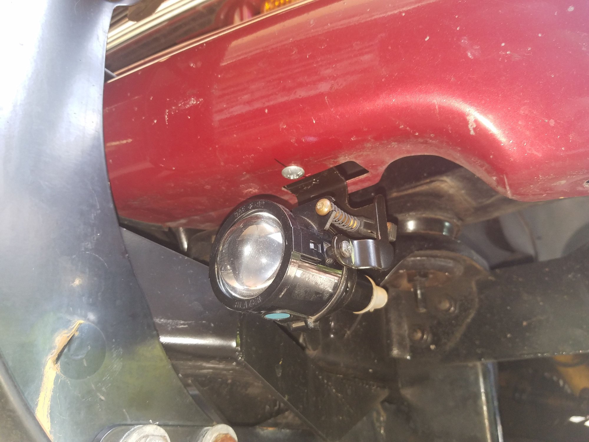 Was pretty easy to mount in my situation. My lower valance is completely gone now; oversized tires started to tare the the outer edges up, then it got in the way of mounting a winch, so I just pulled it off completely... I was able to put some bends in the original Corvette mounting brackets, make a couple new holes in the bottom of the bumper, then secure them with a single bolt. Being that you would be trying to position them in the opening in your valance, you'd probably have to come up with a different mounting solution...